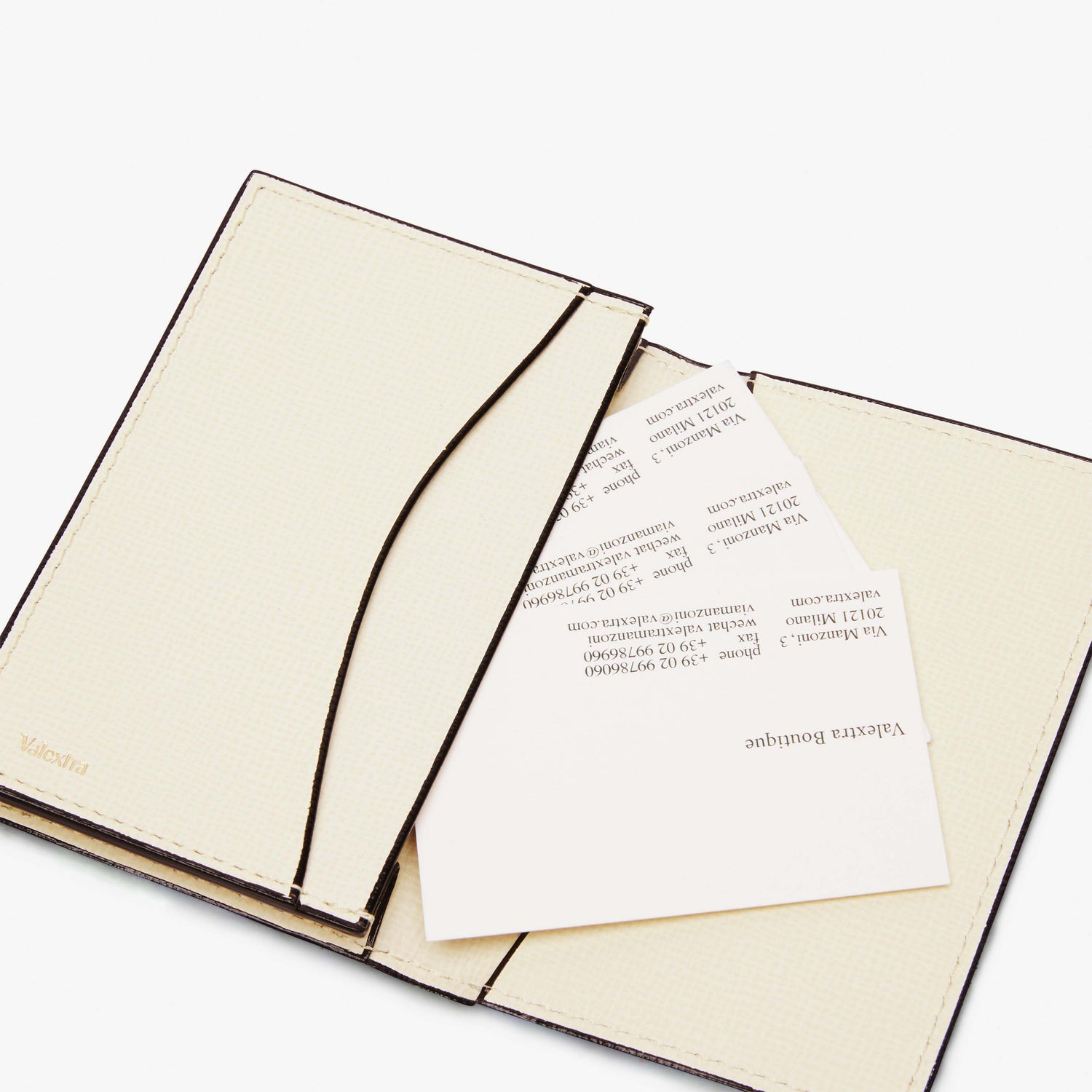 時代にとらわれないエレガントでミニマルなデザインの素材感のあるカードケースです。名刺用コンパートメントが2面あるほか、内側にカードスロット付き。ライナーは革張り。