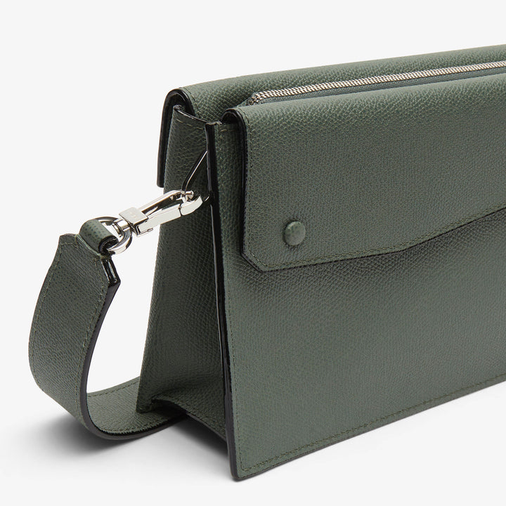 コンパクトなシルエットに斜めにカットしたフラップが印象的なスモール・メッセンジャーです。