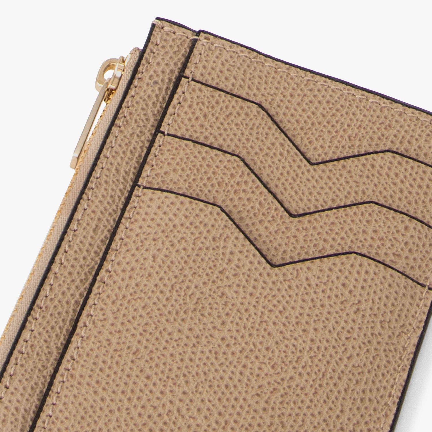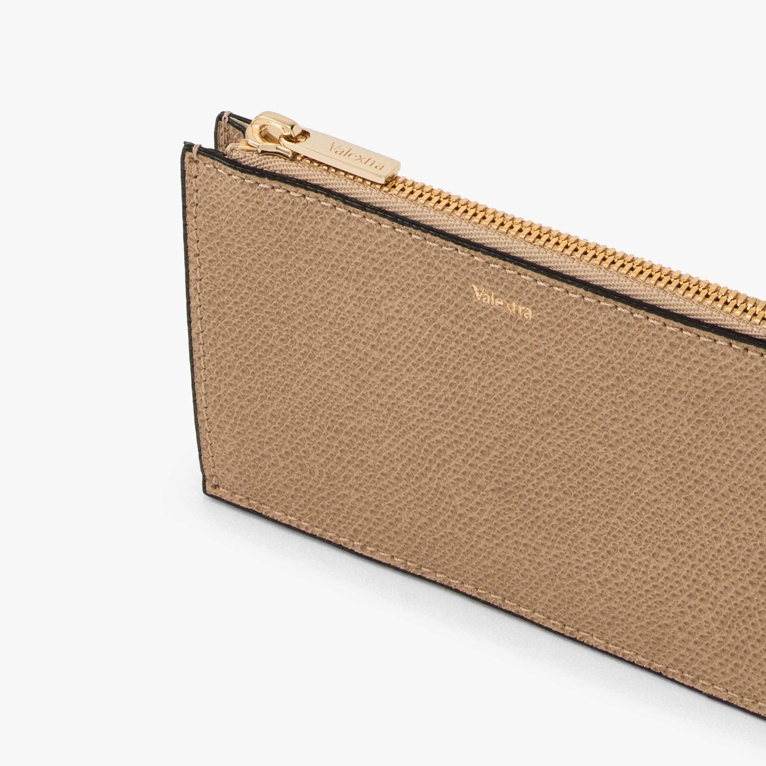 薄型のコインケースです。コインを入れるためのジッパー付きコンパートメントにカードの抜き差しを助けるV字型のカットを施したカードスロットが3枚分ついています。