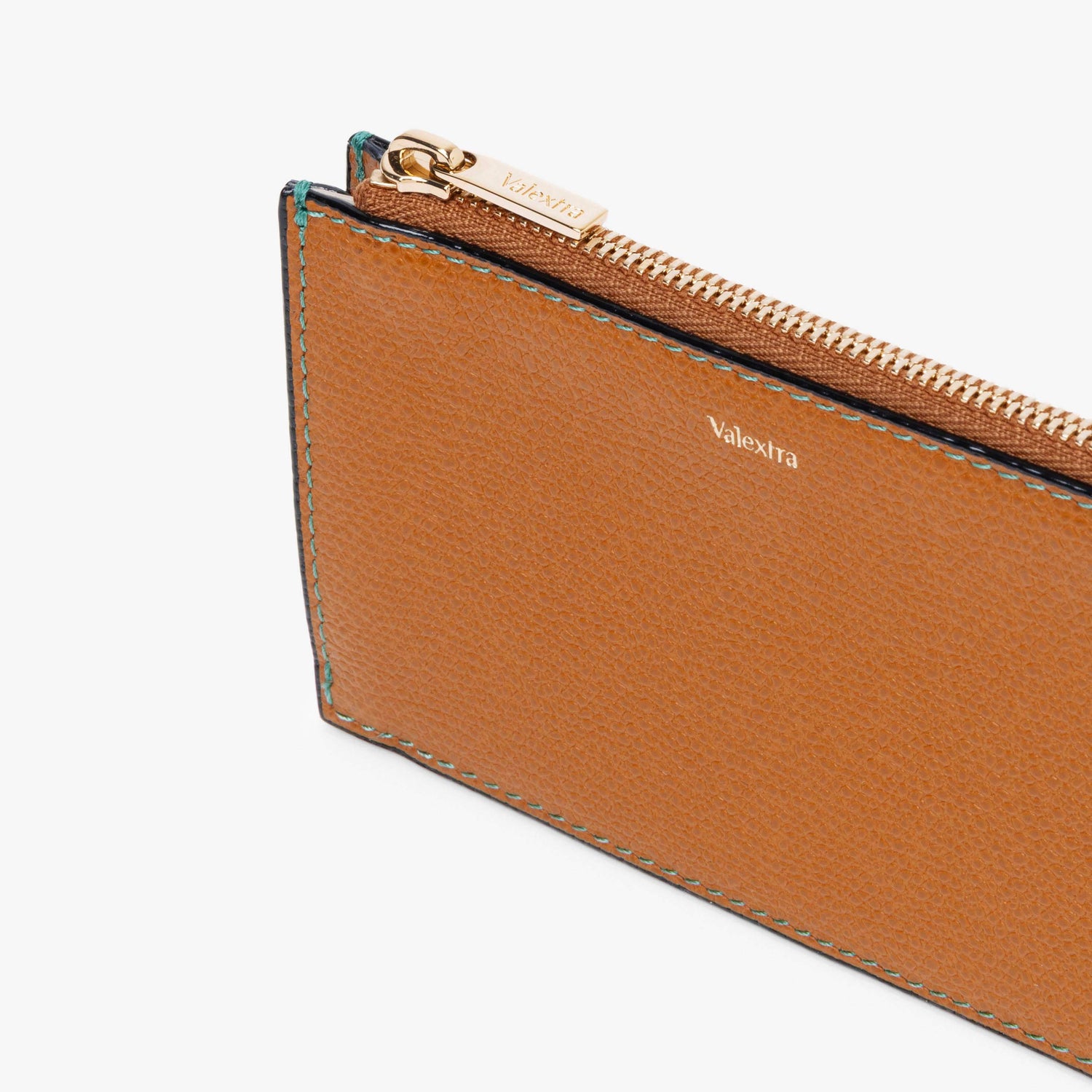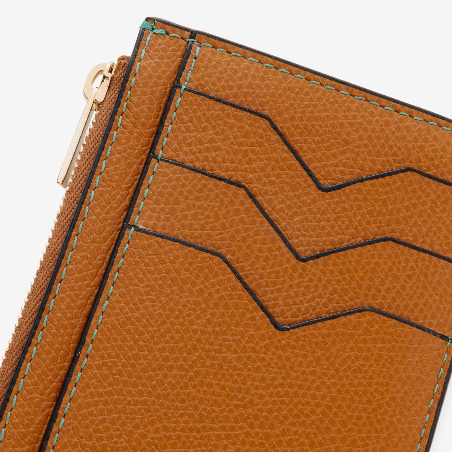 薄型のコインケースです。コインを入れるためのジッパー付きコンパートメントにカードの抜き差しを助けるV字型のカットを施したカードスロットが3枚分ついています。
