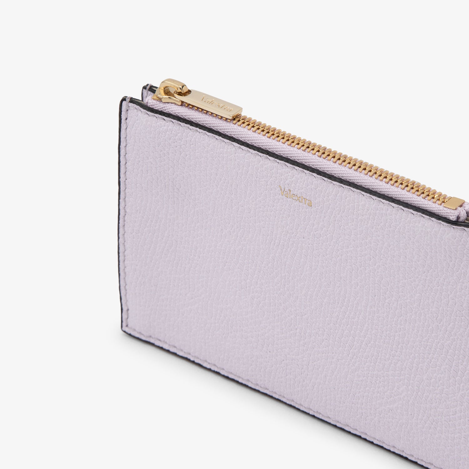 薄型のコインケースです。コインを入れるためのジッパー付きコンパートメントにカードの抜き差しを助けるV字型のカットを施したカードスロットが3枚分ついています。
