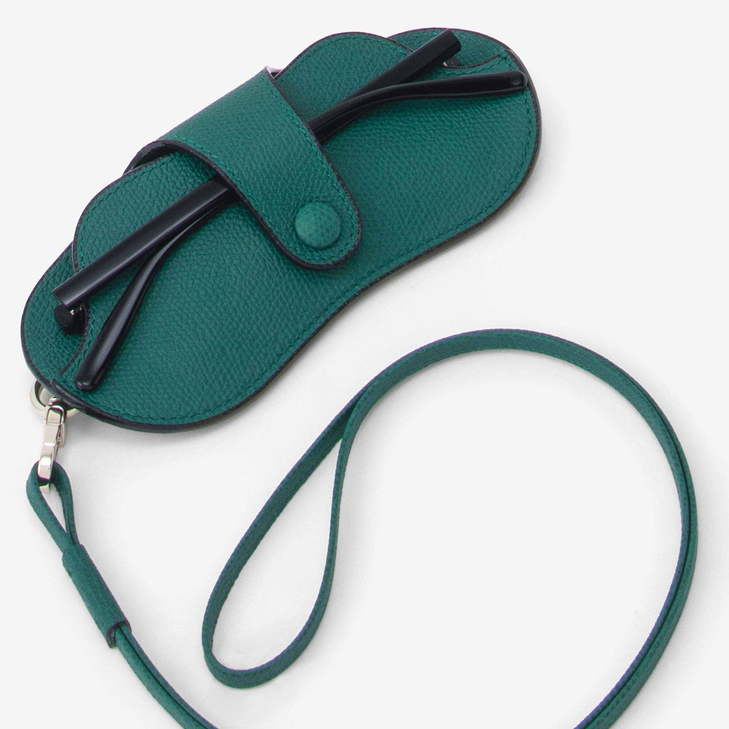 シンプルなデザインの眼鏡ケース。デザイン性のある大き目の眼鏡/サングラスも収納することができ、取り外し可能なネックストラップを付けてアクセサリー感覚で着用することもできます。