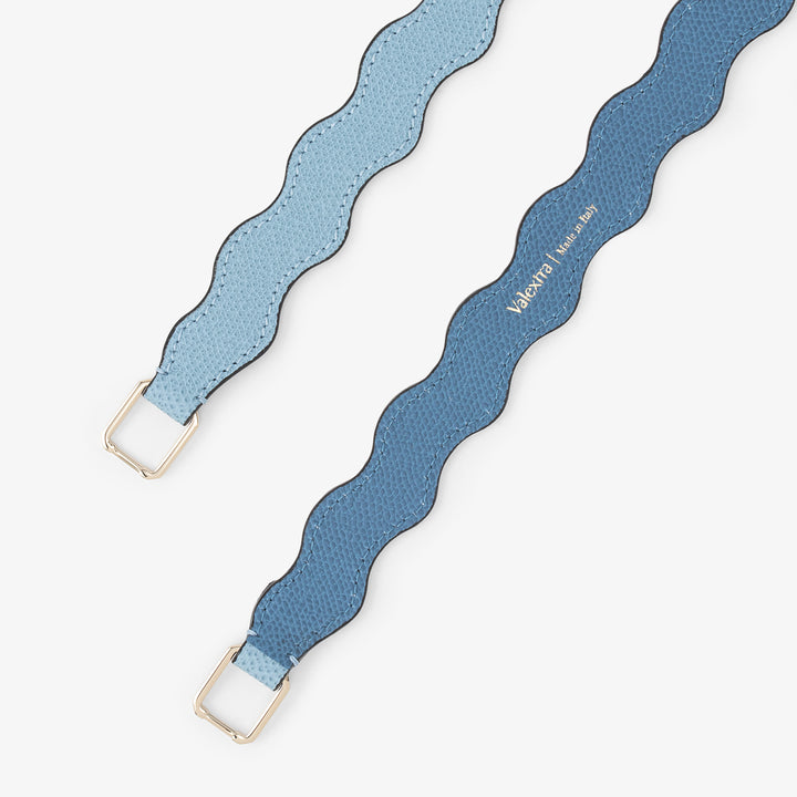 波をかたどったショルダーストラップ ウェイブは、イジィデやセリエエッセなどのハンドバッグに簡単に取り付けることができます。コーディネートにエレガントでありながら遊び心もプラスしてくれます。ミレプンテカーフ製です。