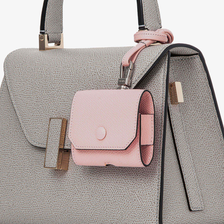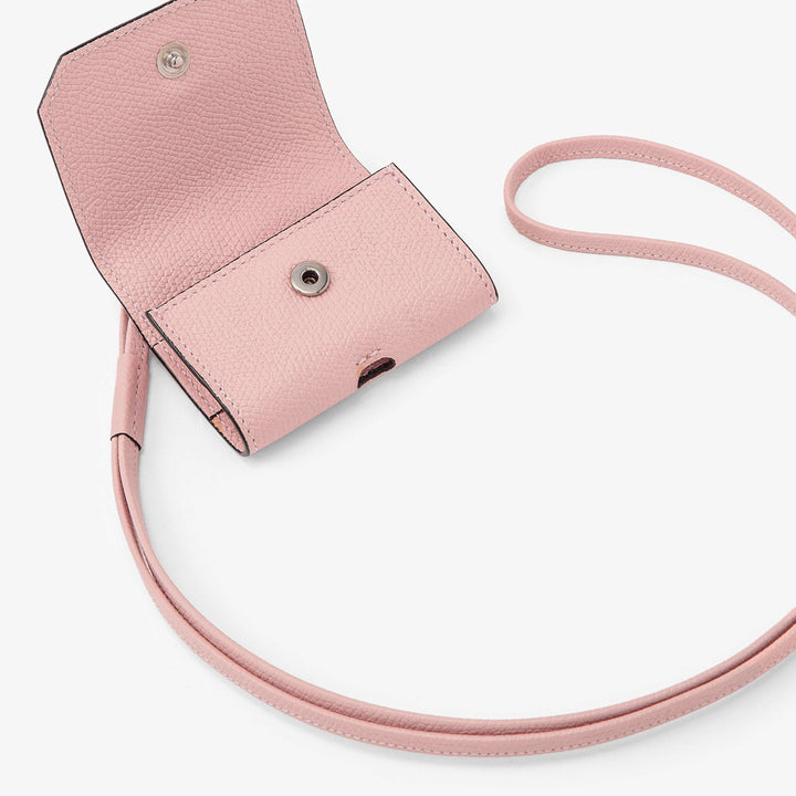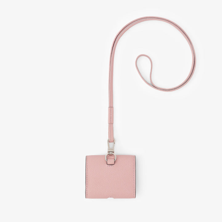 スナップボタンにはボディと同色のくるみボタンを使うなど、機能性とフィネスをあわせ持つエアポッドプロケースです。ストラップは取り外し可能なので、首から下げる他にもベルトループやバッグなどに直接アタッチして持ち運ぶことも出来ます。