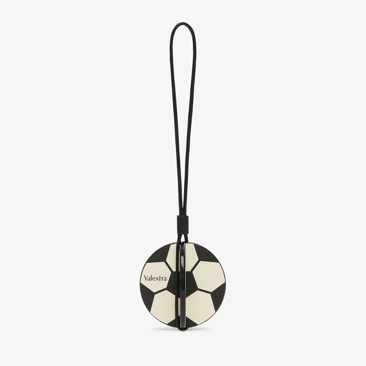 2024 年のオリンピックを記念して、サッカーボールチャームがすべてのハンドバッグにスポーティなアクセントを加えます。ペルガメーナホワイトとブラックのミレプンテカーフレザー製で、手塗りのブラックラッカー仕上げのコスタエッジで仕上げられています。