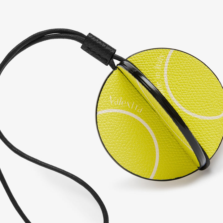 2024 年のオリンピックを記念して、テニスボールチャームがすべてのハンドバッグにライムとホワイトのプレイフルなアクセントを加えます。ミレプンテカーフレザー製で、手塗りのブラックラッカー仕上げのコスタエッジで仕上げられています。