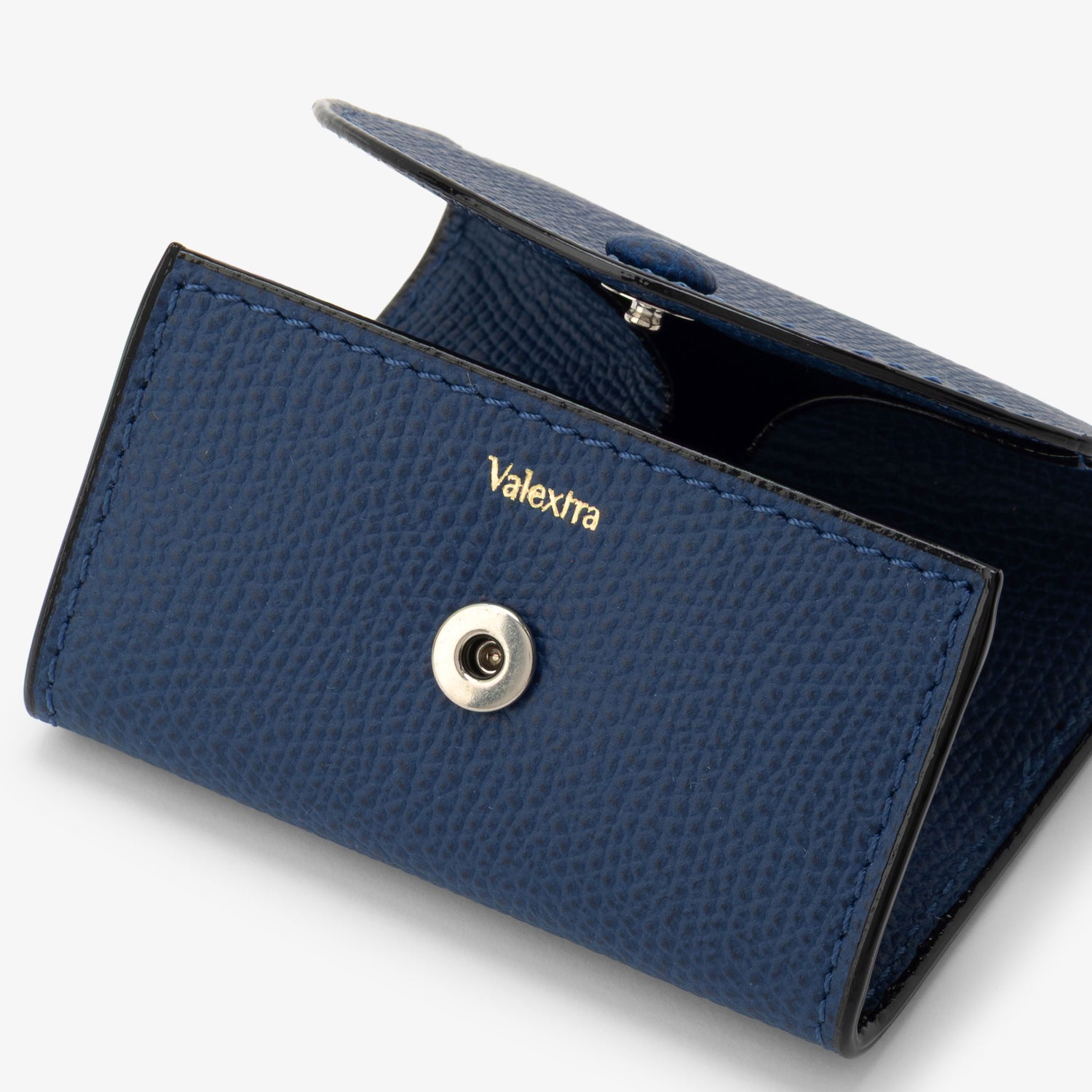 スナップ開閉式の薄型コインケースです。ライナーは革張り。コバと呼ばれる革をカットした端の部分にヴァレクストラ独自の染料”Costa”を手作業で何層にも塗り重ねて磨き上げました。