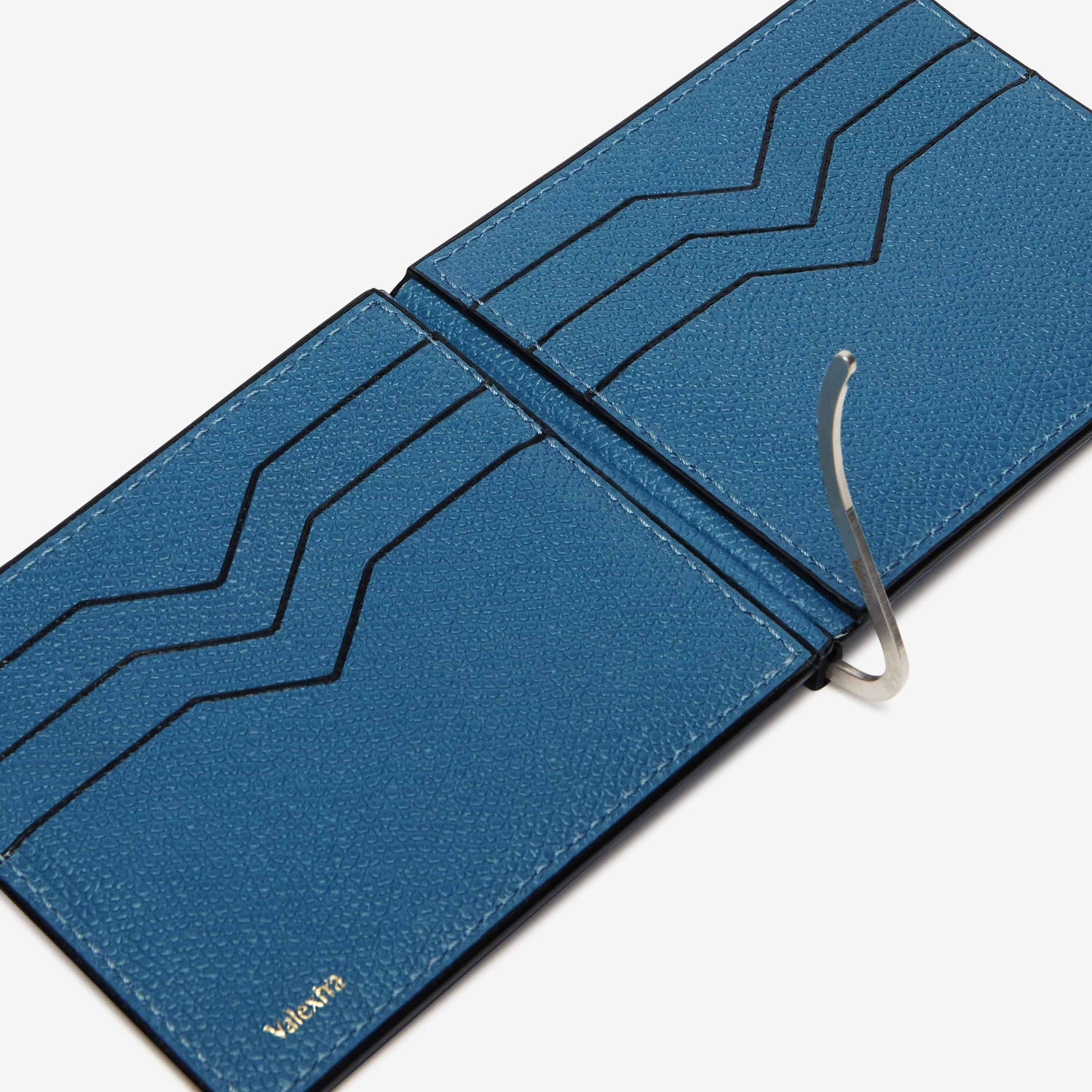 「プラスチックのカードで後払い」がおしゃれなスタイルとなり、ダイナースがクレジットカードの主流だった1956年、オリジナルモデルの「ダブルマネークリップ」の進化形として発売されたシングルタイプのマネークリップです。「シングルマネークリップ」は6枚用カードホルダー付き。金具はシルバー仕上げ、ライナーは革張りとなっており、コバと呼ばれる革をカットした端の部分にヴァレクストラ独自の染料”Costa”を手作業で何層にも塗り重ねて磨き上げました。