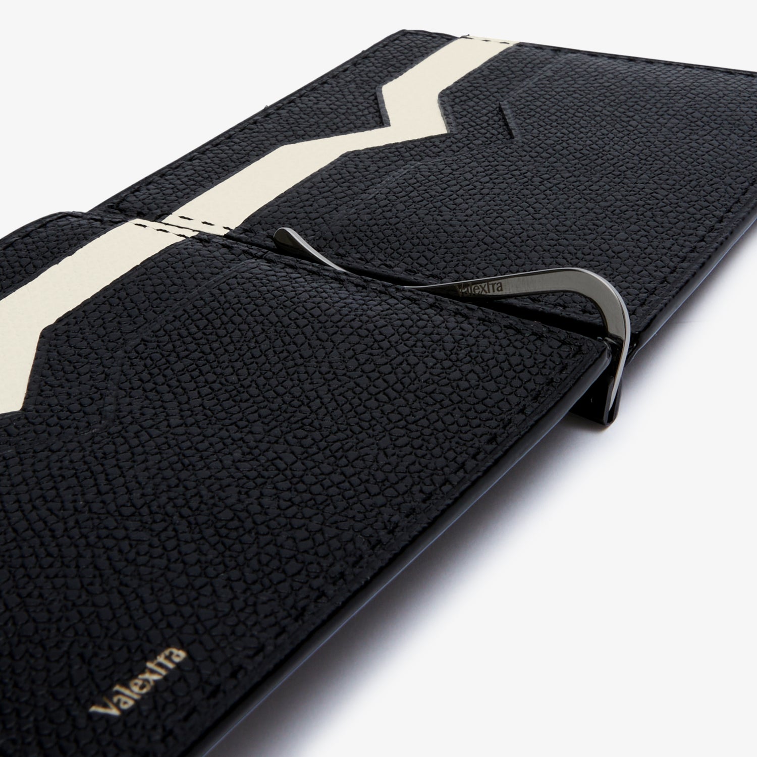 「プラスチックのカードで後払い」がおしゃれなスタイルとなり、ダイナースがクレジットカードの主流だった1956年、オリジナルモデルの「ダブルマネークリップ」の進化形として発売されたシングルタイプのマネークリップです。「シングルマネークリップ」は6枚用カードホルダー付き。金具はシルバー仕上げ、ライナーは革張りとなっており、コバと呼ばれる革をカットした端の部分にヴァレクストラ独自の染料”Costa”を手作業で何層にも塗り重ねて磨き上げました。