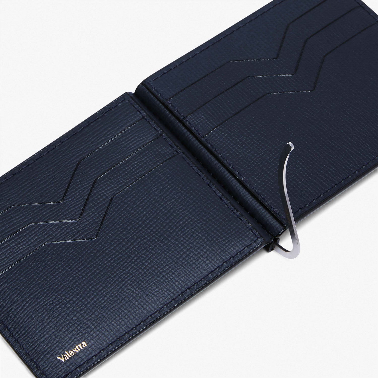 「シングルマネークリップ」は6枚用カードホルダー付き。金具はシルバー仕上げ、ライナーは革張りとなっており、コバと呼ばれる革をカットした端の部分にヴァレクストラ独自の染料”Costa”を手作業で何層にも塗り重ねて磨き上げました。