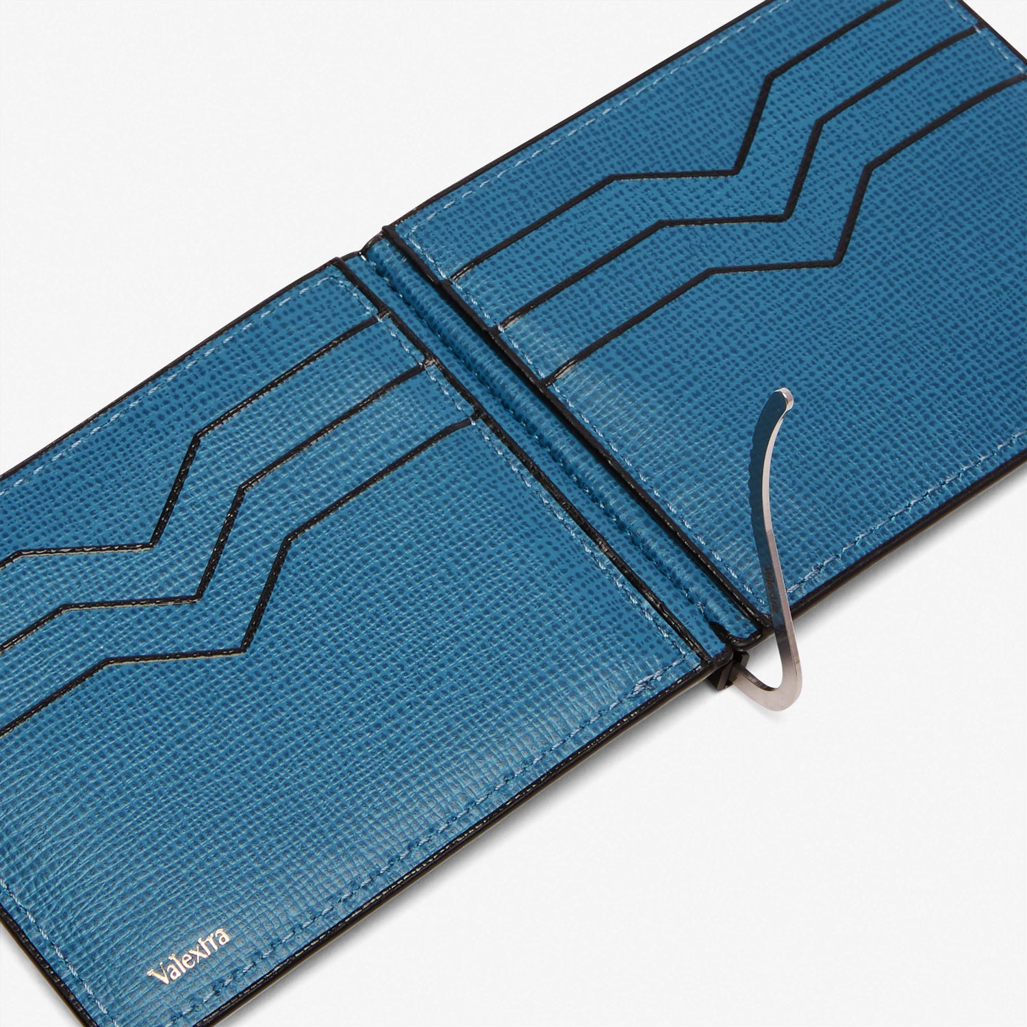 「シングルマネークリップ」は6枚用カードホルダー付き。金具はシルバー仕上げ、ライナーは革張りとなっており、コバと呼ばれる革をカットした端の部分にヴァレクストラ独自の染料”Costa”を手作業で何層にも塗り重ねて磨き上げました。