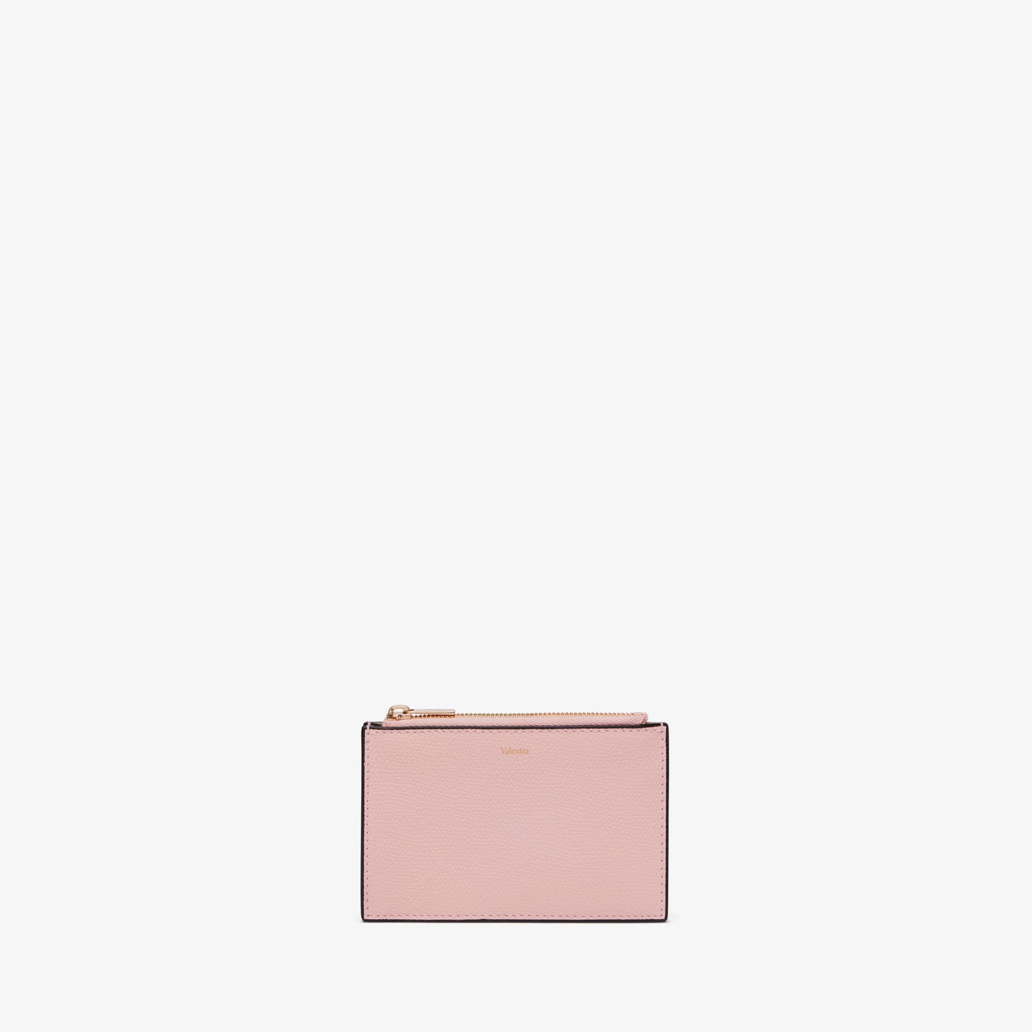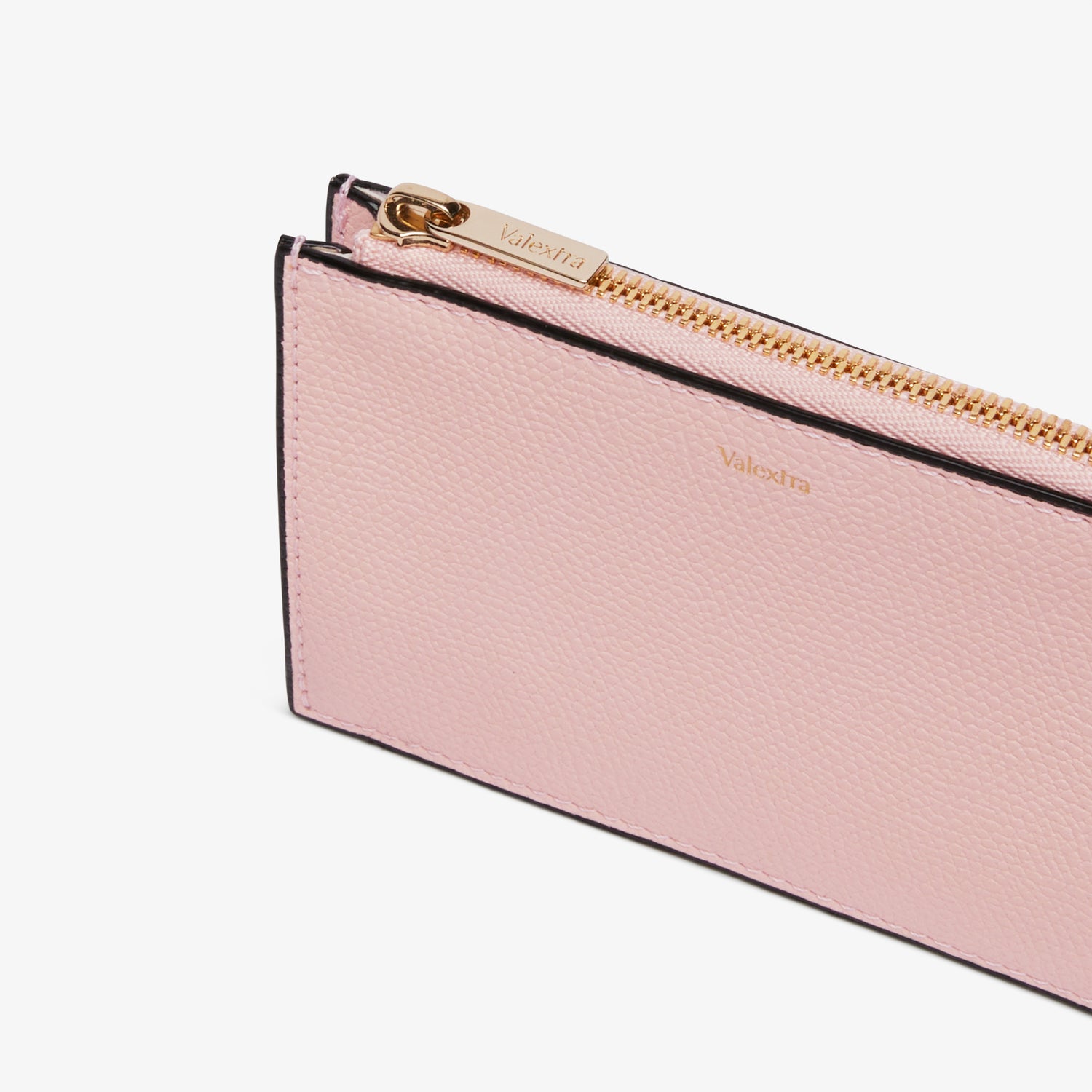 薄型のコインケースです。コインを入れるためのジッパー付きコンパートメントにカードの抜き差しを助けるV字型のカットを施したカードスロットが3枚分ついています。