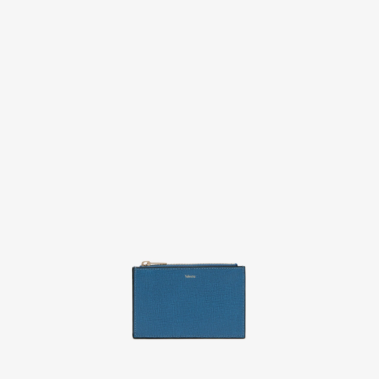 薄型のコインケースです。コインを入れるためのジッパー付きコンパートメントにカードの抜き差しを助けるV字型のカットを施したカードスロットが3枚分ついています。
