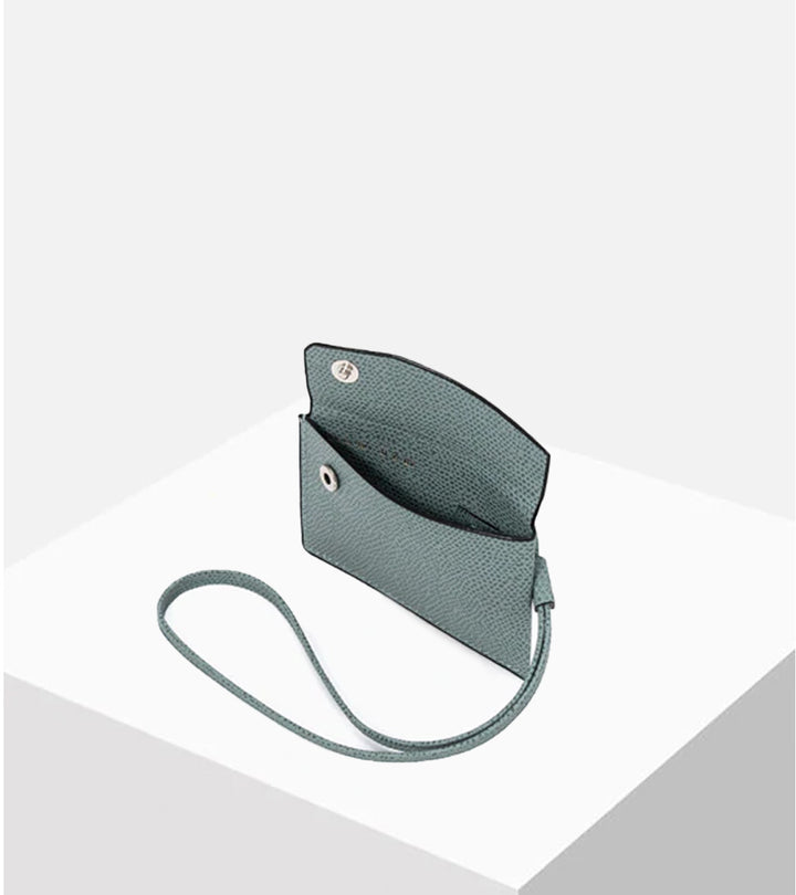 バッグのハンドルに付けられるIDカードホルダーです。アシメトリーなフラップが特徴のミニマルなデザインは、ヴァレクストラのシグネチャーである職人の手による漆黒のエッジペインティングで引き立てられます。