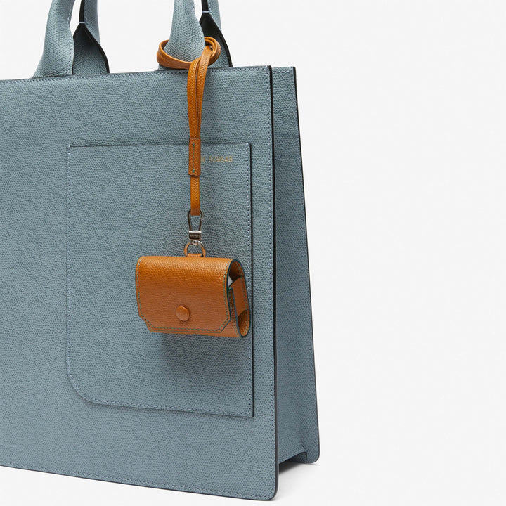 スナップボタンにはボディと同色のくるみボタンを使うなど、機能性とフィネスをあわせ持つエアポッドプロケースです。ストラップは取り外し可能なので、首から下げる他にもベルトループやバッグなどに直接アタッチして持ち運ぶことも出来ます。