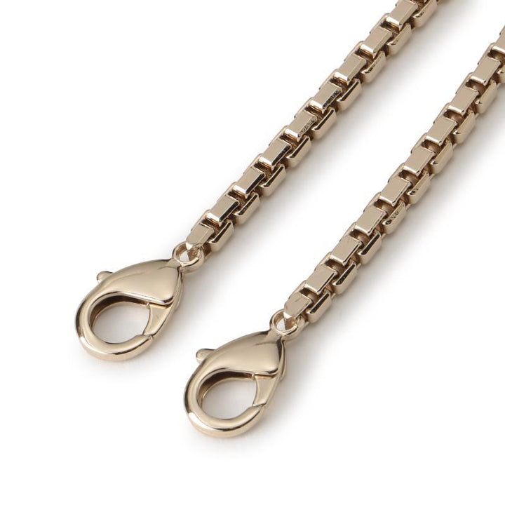 イジィデ ベルト、イジィデ クラッチやトリックトラック クロスボディ ナノなどヴァレクストラ製品に取り付け可能なチェーンストラップ。フック式で簡単に着脱でき、お手持ちのアイテムに魅力的なゴールドの輝きをプラスして楽しむことができます。