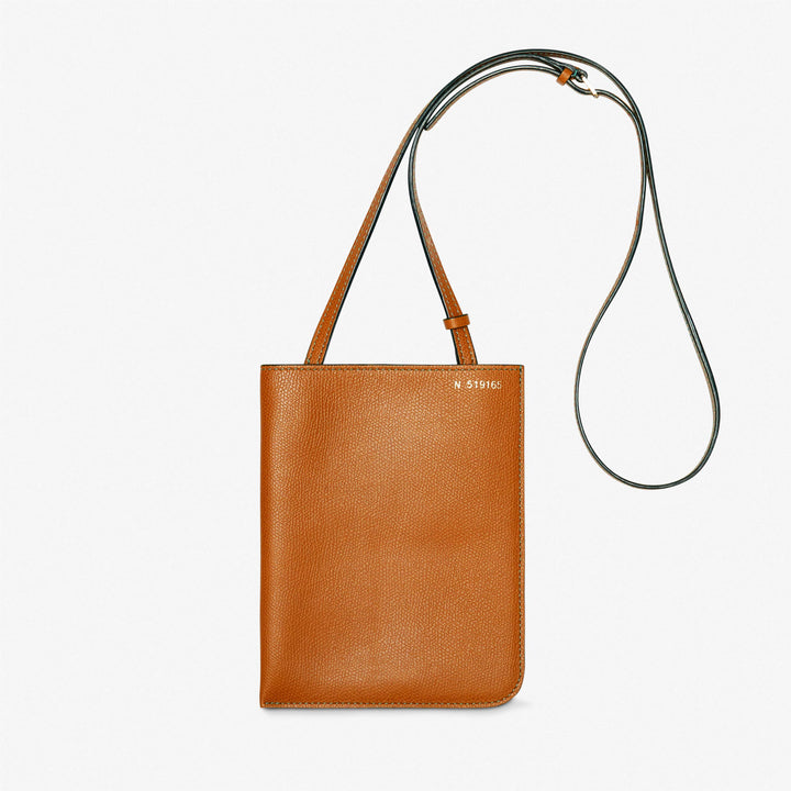 パスポートやチケット、携帯電話など、すぐ手の届くところに置いておきたいアイテムの収納に便利なドキュメントホルダーです。マチが薄いので、例えばコートの下でクロスキャリーするときでも邪魔になりにくいデザインです。内側にはカード用のスロットが2つあります。