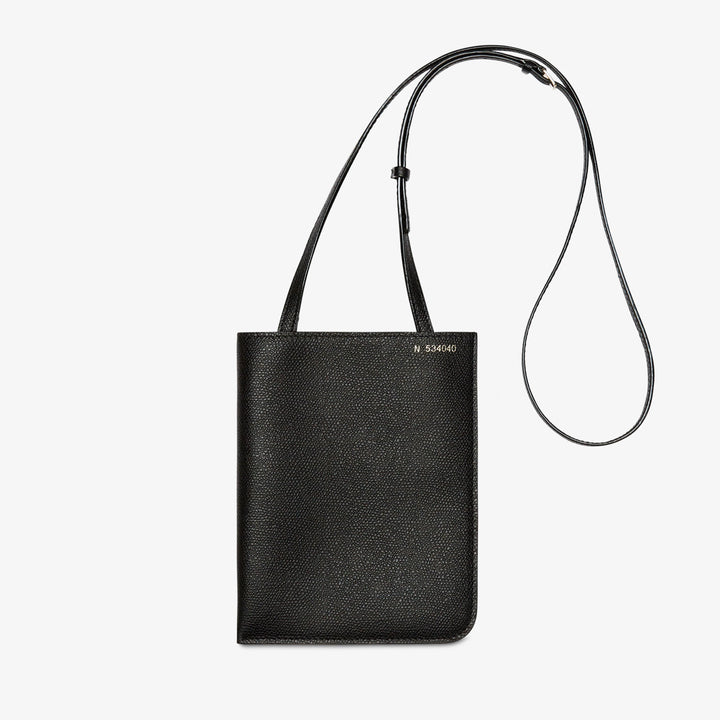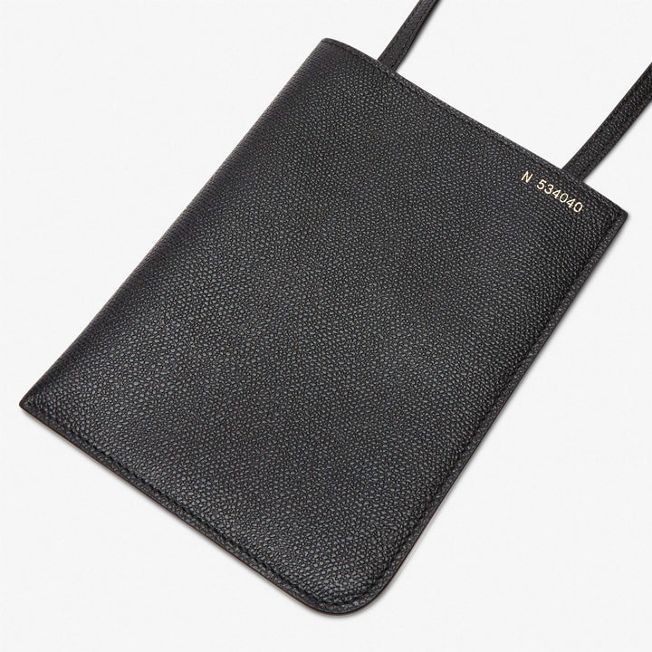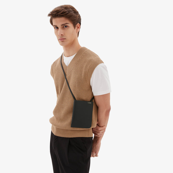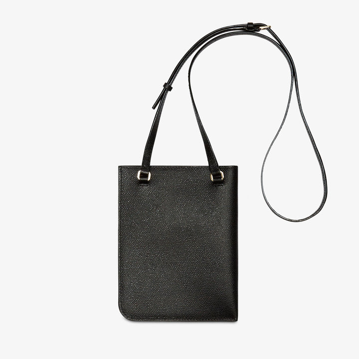パスポートやチケット、携帯電話など、すぐ手の届くところに置いておきたいアイテムの収納に便利なドキュメントホルダーです。マチが薄いので、例えばコートの下でクロスキャリーするときでも邪魔になりにくいデザインです。内側にはカード用のスロットが2つあります。