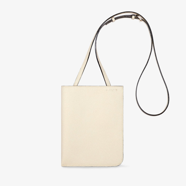パスポートやチケット、携帯電話など、すぐ手の届くところに置いておきたいアイテムの収納に便利なドキュメントホルダーです。マチが薄いので、例えばコートの下でクロスキャリーするときでも邪魔になりにくいデザインです。内側にはカード用のスロットが2つあります。
