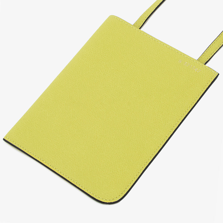 パスポートやチケット、携帯電話など、すぐ手の届くところに置いておきたいアイテムの収納に便利なドキュメントホルダーです。マチが薄いので、例えばコートの下でクロスキャリーするときでも邪魔になりにくいデザインです。内側にはカード用のスロットが2つあります。