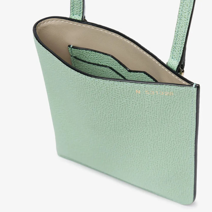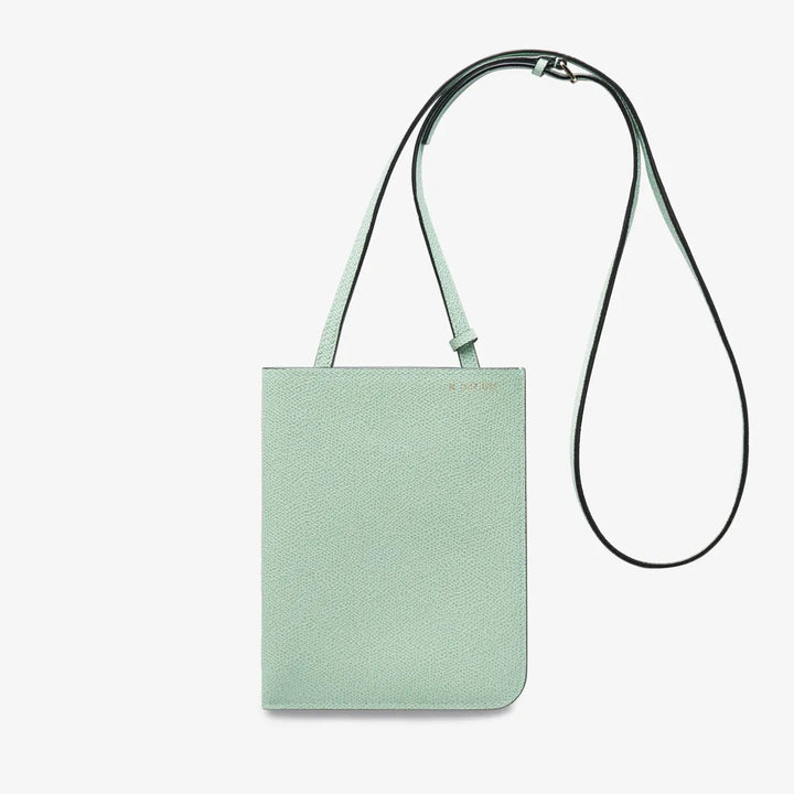 パスポートやチケット、携帯電話など、すぐ手の届くところに置いておきたいアイテムの収納に便利なドキュメントホルダーです。マチが薄いので、例えばコートの下でクロスキャリーするときでも邪魔になりにくいデザインです。内側にはカード用のスロットが2つあります。
