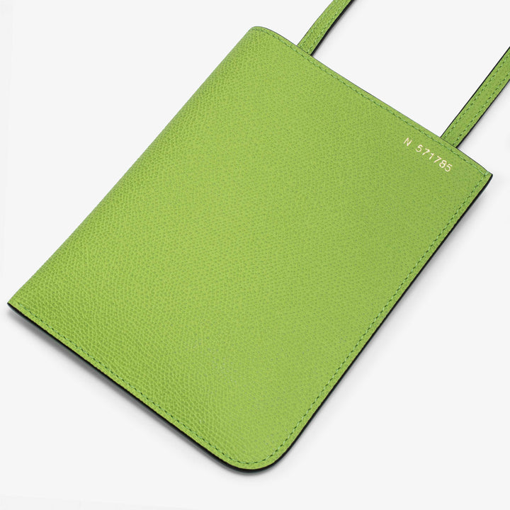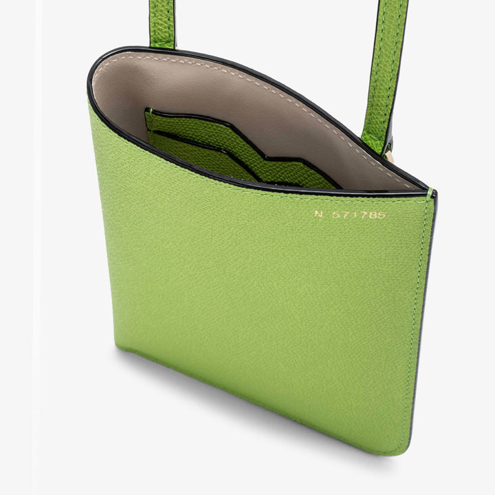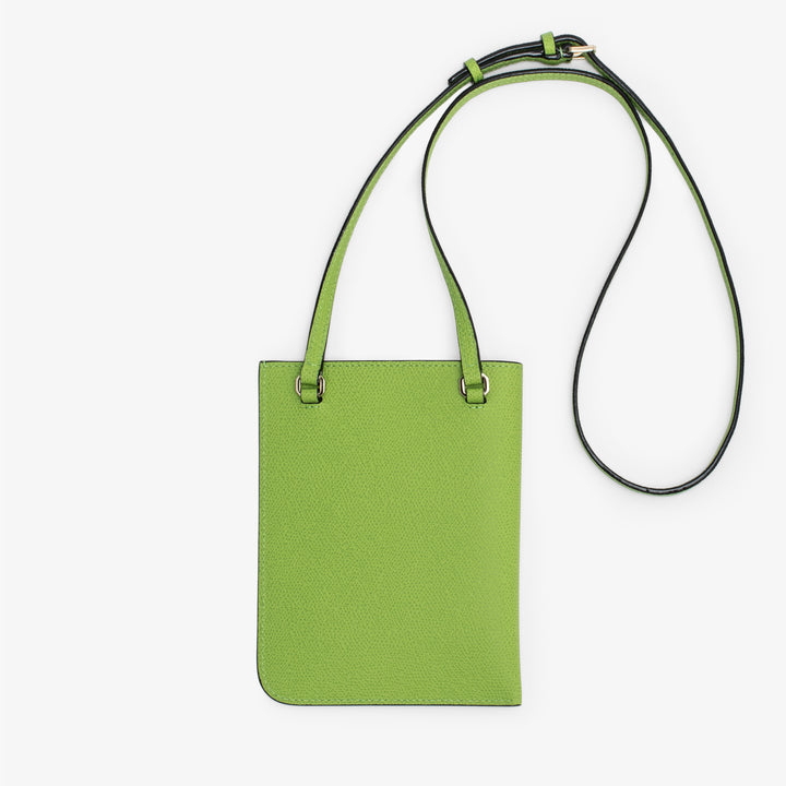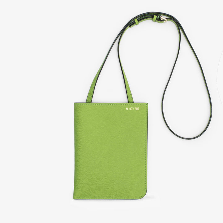 パスポートやチケット、携帯電話など、すぐ手の届くところに置いておきたいアイテムの収納に便利なドキュメントホルダーです。マチが薄いので、例えばコートの下でクロスキャリーするときでも邪魔になりにくいデザインです。内側にはカード用のスロットが2つあります。