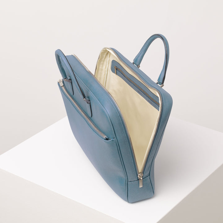 活動的な若きプロフェッショナルにとって理想的な軽量型ブリーフケース。外側には必需品が出し入れしやすいジッパー付きコンパートメント、内側にはジッパー式ポケット、フラットポケット4つ、ペンループ2つ付き。ライナーは手入れがしやすい布張り仕様。
