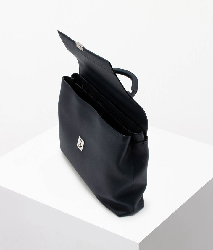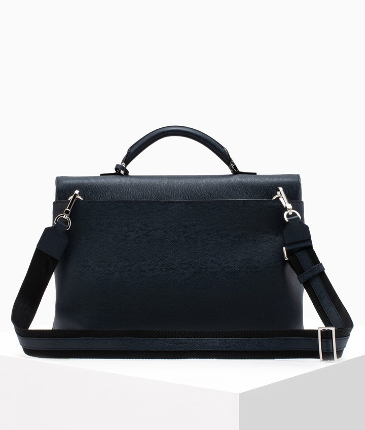 二室構造のブリーフケース。取り外し可能なショルダーストラップと内側にはジップ式ポケット付。