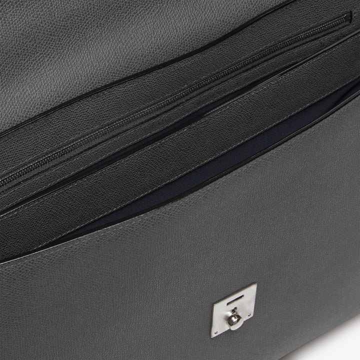 二室構造のブリーフケース。取り外し可能なショルダーストラップと内側にはジップ式ポケット付。