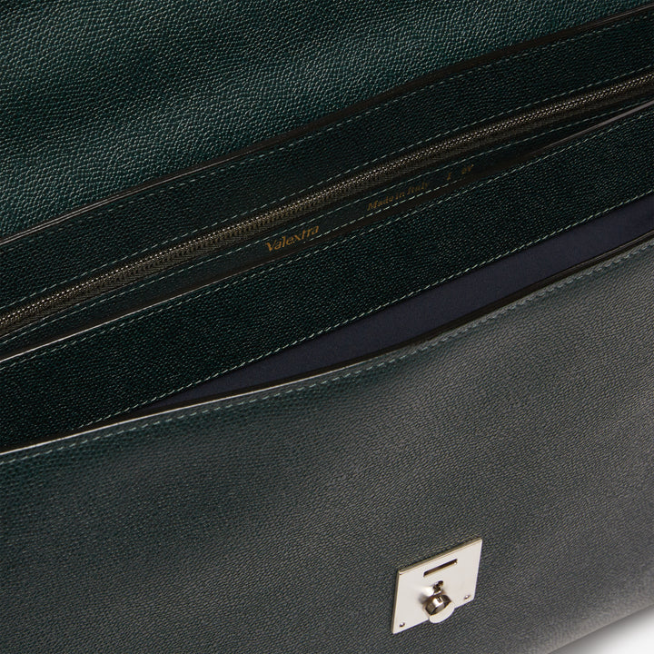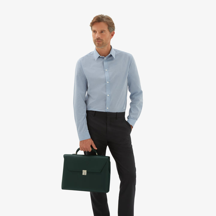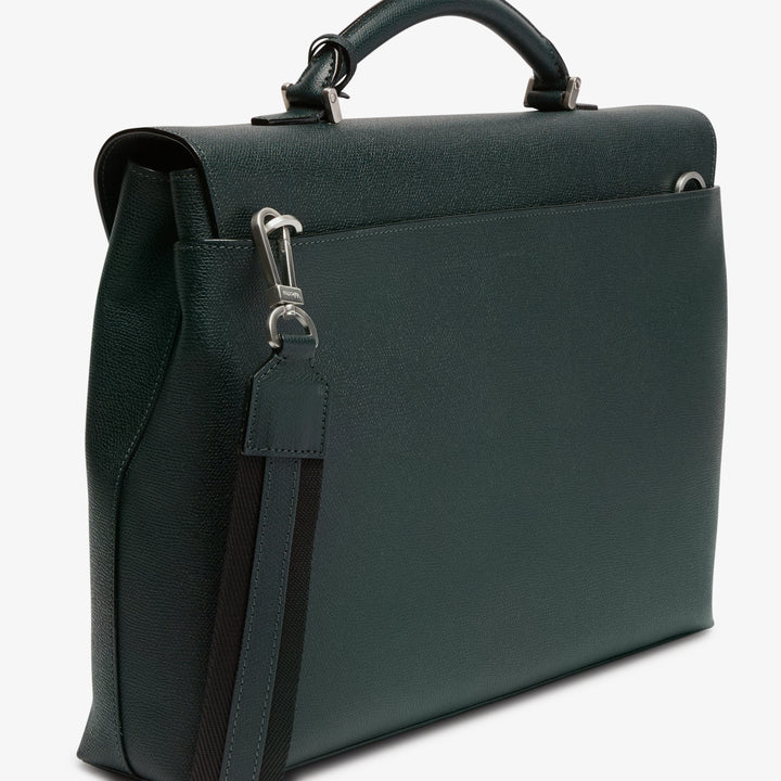 二室構造のブリーフケース。取り外し可能なショルダーストラップと内側にはジップ式ポケット付。