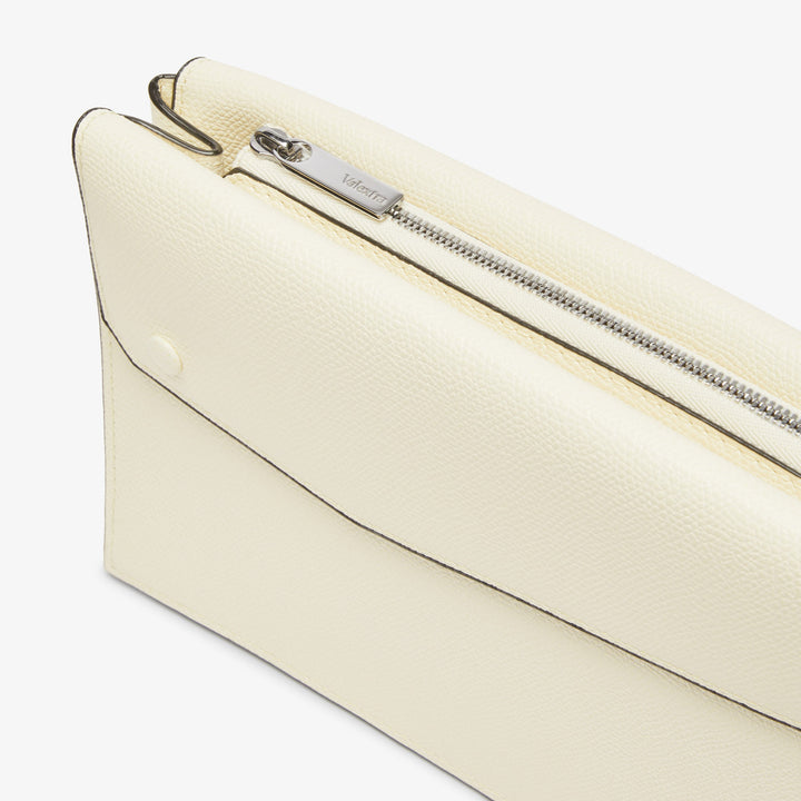 ボディはフラップ付きコンパートメントが2つにジッパー付コンパートメントが1つ、ショルダーストラップを外せばクラッチバッグにも。