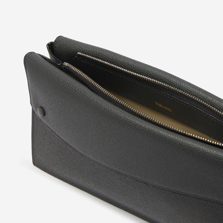 ボディはフラップ付きコンパートメントが2つにジッパー付コンパートメントが1つ、ショルダーストラップを外せばクラッチバッグにも。