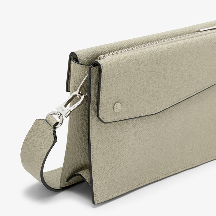 ボディはフラップ付きコンパートメントが2つにジッパー付コンパートメントが1つ、ショルダーストラップを外せばクラッチバッグにも。
