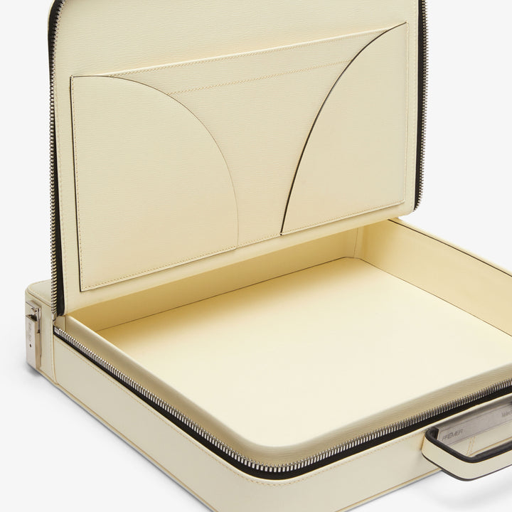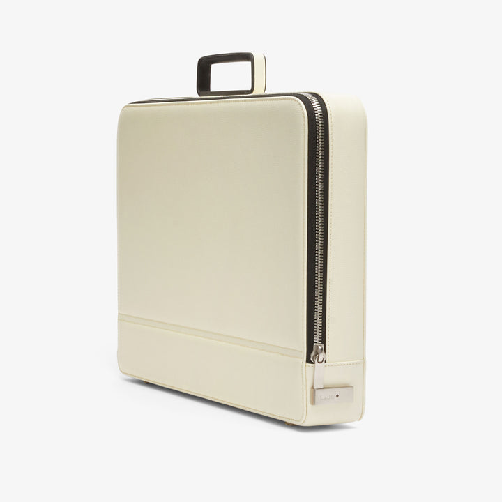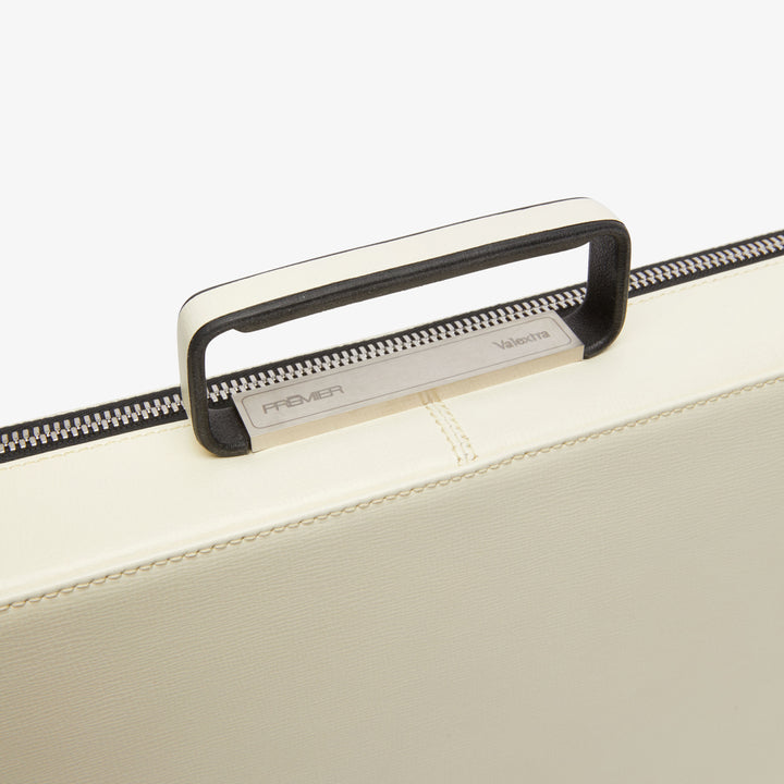1973年はプレミエブリーフケース誕生の年です。時のミラノ市長アルド・アニアージがヴァレクストラ本社を訪問時にプレゼントしたブリーフケースを“逸品(プレミア)”に値すると評したことからその名が付きました。モダンなアタッシュケースとして認められたプレミエアタッシュケースは、直線的なデザインと技術の粋を究めた自慢のアイテムです。3面が開くダイキャスト製のジッパーはNASAの宇宙服に使われているジッパーと同じものが使われ、バッグ本体に傷が付かないよう考え抜かれた、巧みな技術によるステンレススチール製ロックで閉じる仕組みです。本来は建築家やデザイナーが設計図やスケッチを持ち歩くために作られた製品ですが、時代は移り変わり、現在はデザインに敏感な人々の間で、コンピューター用ケースとして使われています。