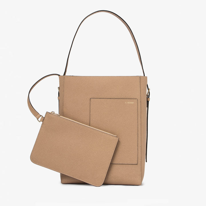 カーブを描いたディティールの外ポケットにはシリアルナンバーが刻印され、1つ1つのバッグを唯一無二のものとしています。エッジはブラックコスタで縁取られ、洗練されたアーバンクラフトとなっています。