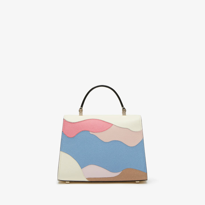 色彩豊かなミレプンテカーフスキンを緻密なインターシャ技法で組み合わせ、夜明けの情景を描いています。