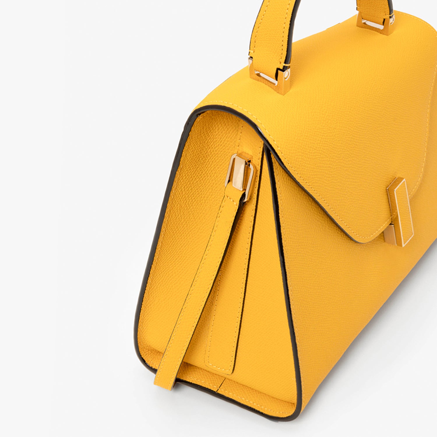絶妙なミディアムサイズのイジィデバッグは、今シーズン最注目のバッグです。コンパクトで、どんな装いにも合わせやすく、手で持つことも、斜めがけも可能です。伝統的なインスピレーションとモダンなスピリットを1日中お使いいただけるスタイルへとアレンジしたユニークなデザインで、すべての必需品を収納できるスペースがあります。印象的なピラミッド型のシェイプは、ソフトカーフスキン製。上部にハンドル、取り外し可能なショルダーストラップ、内側にはジッパー式ポケット付き。ゴールドトーンの金具は伝統的な染料”Costa”を施したヴァレクストラ独自のエッジと美しくマッチします。