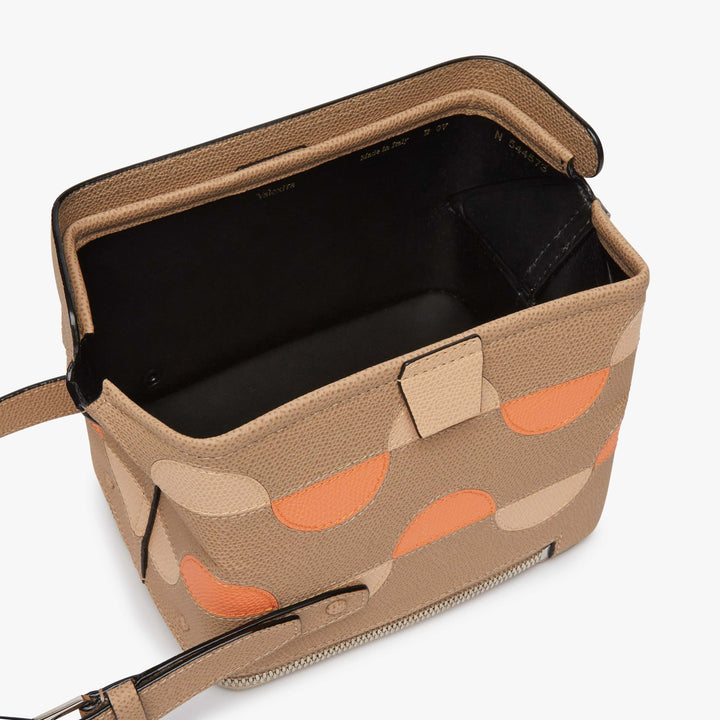 職人技による複雑なインターシャ技法(象嵌細工)によってダイナミックで動きのあるデザインを表現しています。シグネチャーのミレプンテカーフスキンで作られた芸術的な曲線パターンは、トリックトラックがいつまでもスタイリッシュなヴァレクストラのオリジナルアイコンであることを際立たせています。前面と後面の2つのコンパートメントに分かれており、実用的でありながら特別感のあるデザイン性の高いバッグです。