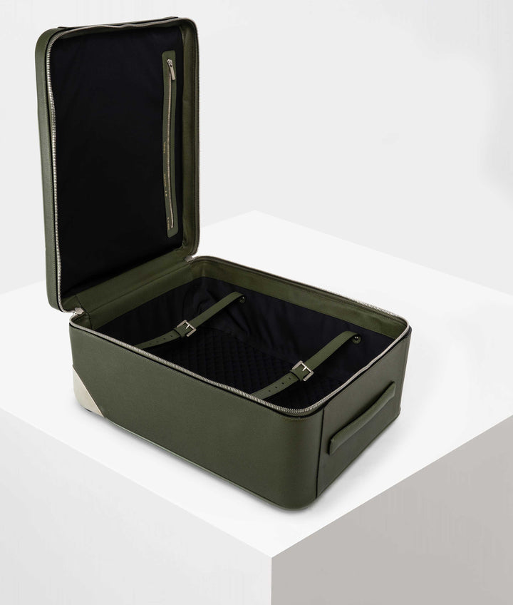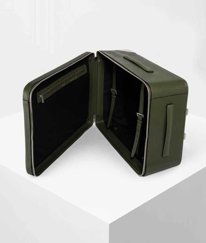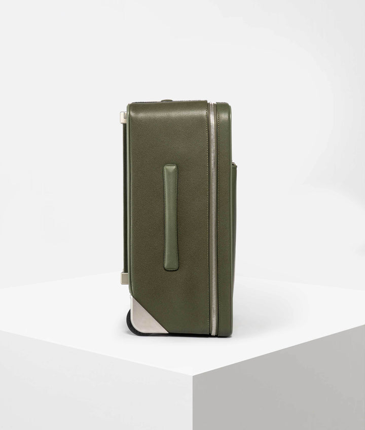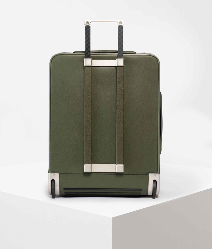 トローリーはいつも信頼できる理想的な旅の同伴者。美的センスと機能性を好感度の高いシルエットにまとめました。機内持ち込みサイズ、素材はソフトカーフスキン製。サイドとトップに伸縮するカーボンファイバー製ハンドルが付いているので、手に持つことも、キャスターを使って引っぱりながら運ぶことも可能です。前部にはマットなシルバートーンのジッパーが付いた広々としたポケットがあり、旅行用の書類が入れられるほか、内側には衣類が落ちないよう押さえるダブルバックル式の保護ストラップ付き。ネームタグにはゴールドのヴァレクストラロゴが入り。
