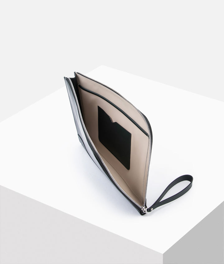 ジッパーで2方向に開く軽量のドキュメントケースは、移動する機会が多い都会のプロフェッショナルにとって理想的です。内側にはフラットポケット付き。