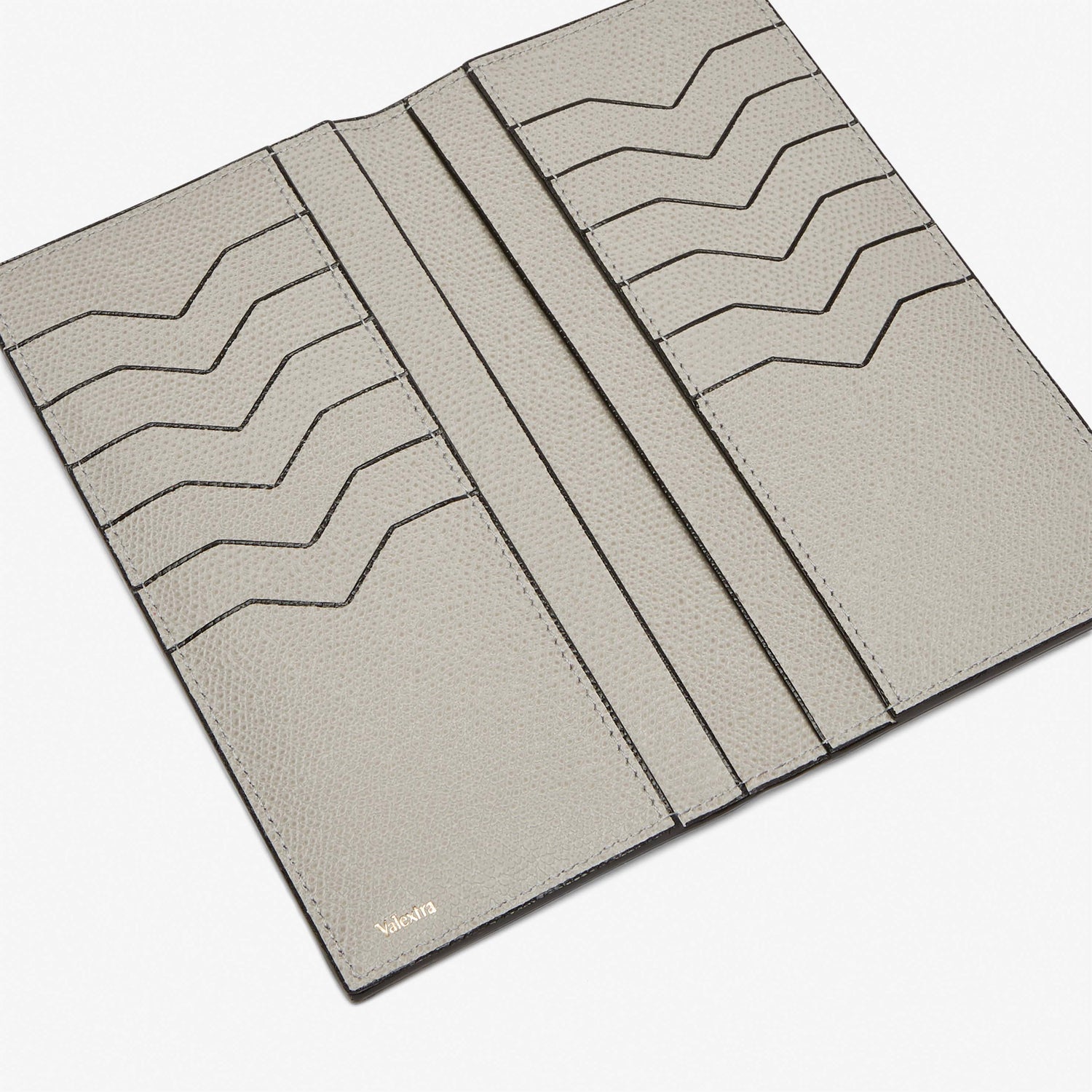 ブランドの象徴であるV字カットが施された12枚用のクレジットカードスロット付き、縦型の長財布です。