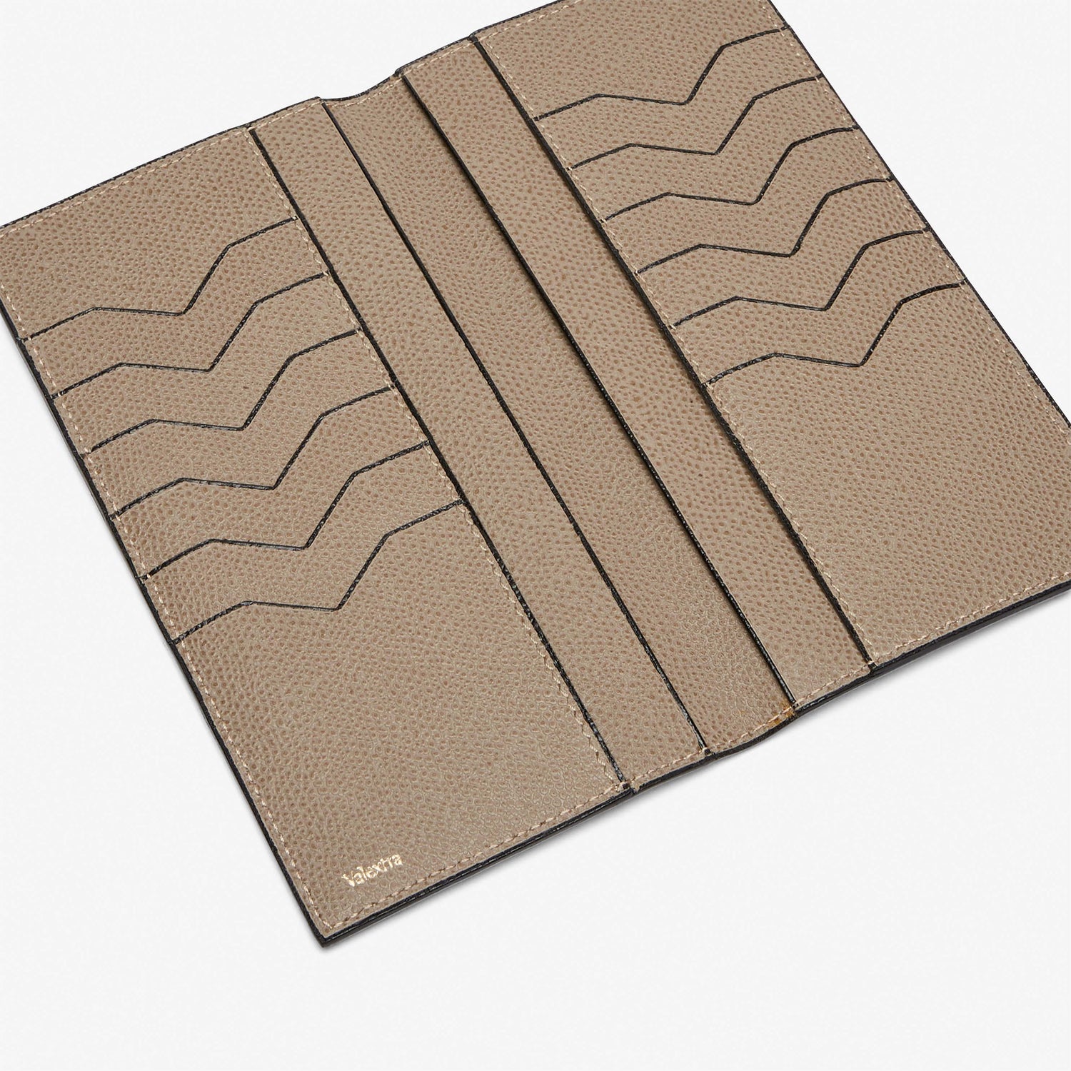 ブランドの象徴であるV字カットが施された12枚用のクレジットカードスロット付き、縦型の長財布です。