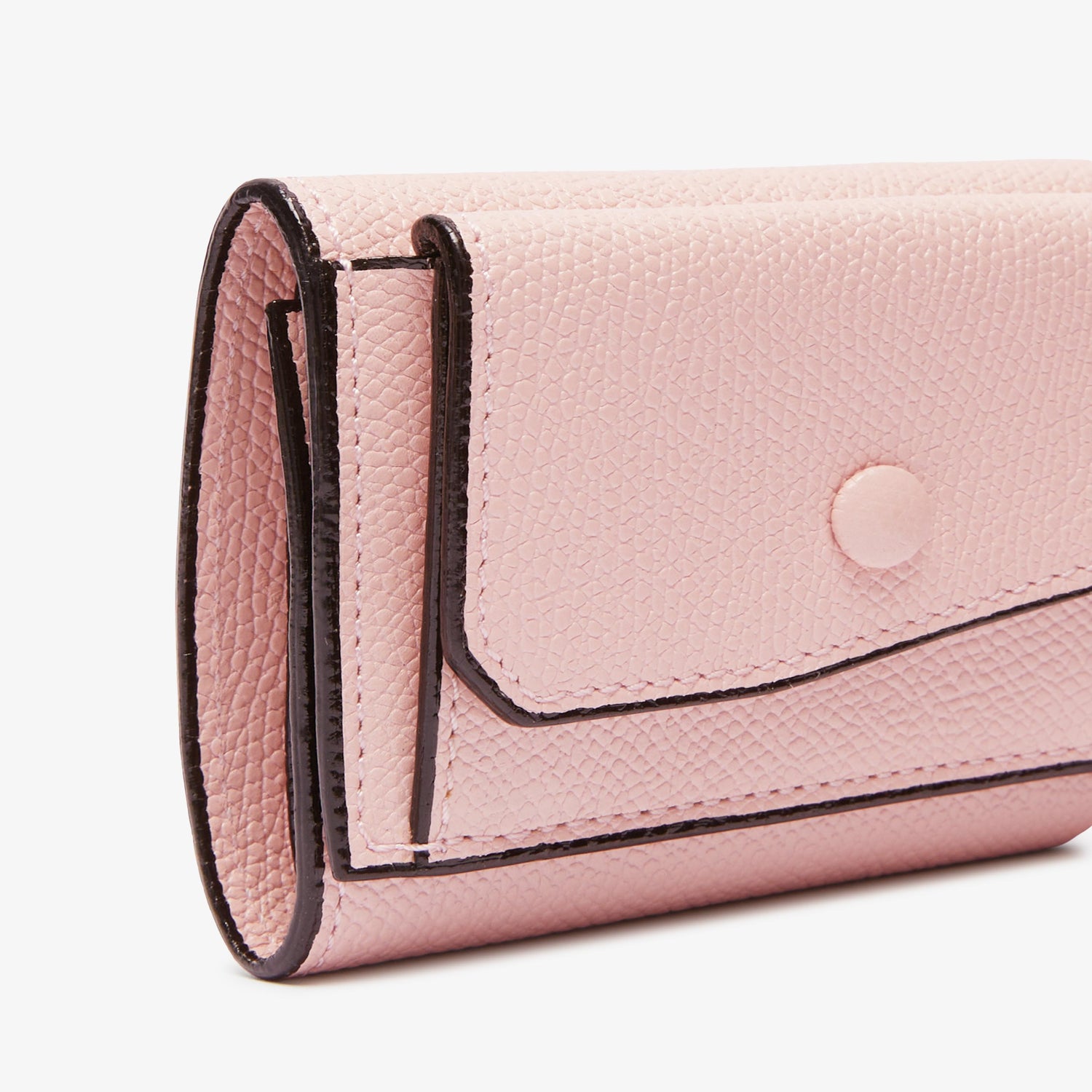 3つ折りウォレット。前面にコインケース、札入れの中には3カードホルダー付き。 コバと呼ばれる革をカットした端の部分にヴァレクストラ独自の染料”Costa”を手作業で何層にも塗り重ねて磨き上げました。