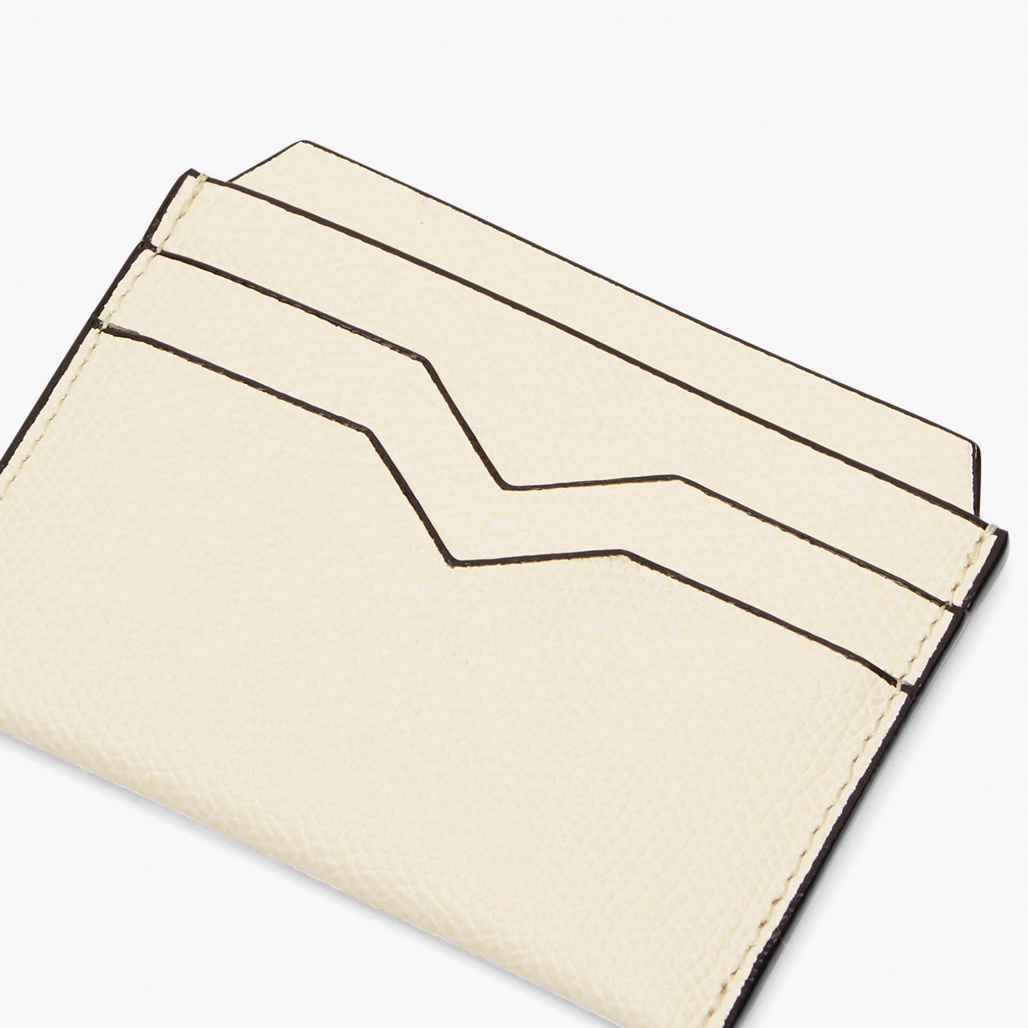 さりげなくエレガントな素材感のカードホルダーは、いつの世も必ず手元に置いておきたいアイテムです。ブランドの象徴であるV字カットが施された4つのクレジットカード用のスロットと中央に2つの仕切り付きスロット。ライナーは革張り。