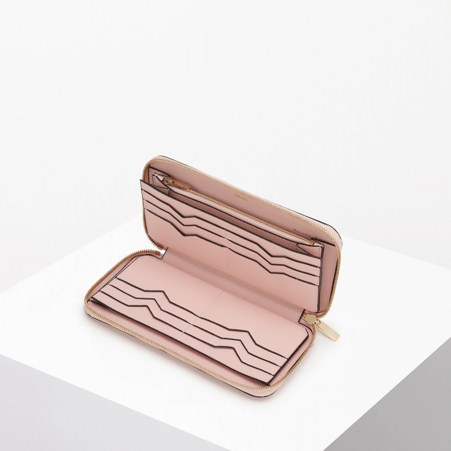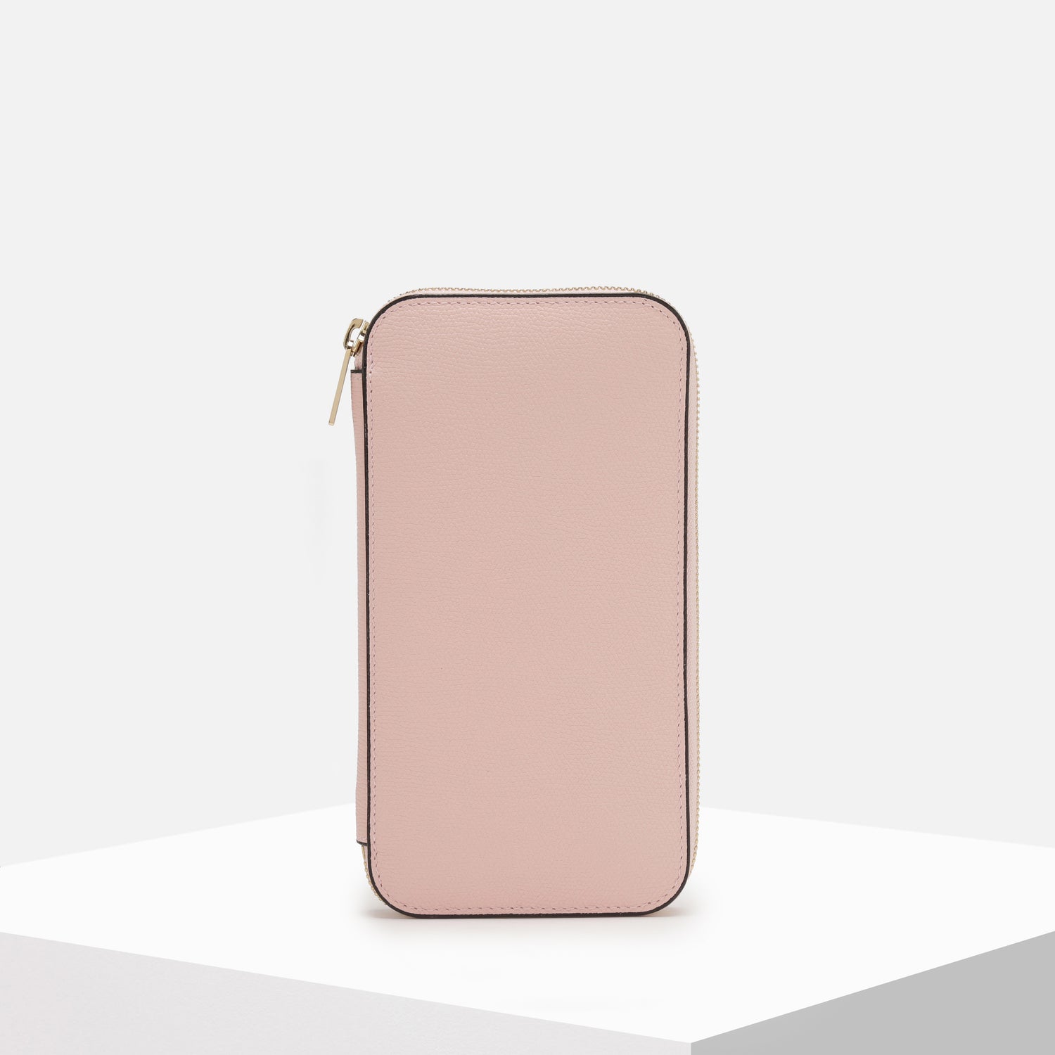 ヴィンテージ感のあるデザインのラウンドジップウォレットから着想を得て、贅沢なレザー使いとイタリアの熟練のクラフトマンシップを投入したデザイン。内側にはブランドの象徴であるV字カットが施された12枚のクレジットカード用ホルダー、コンパートメントが2つ、ジッパー式コインケース付き。ライナーはしなやかな革張り。コバと呼ばれる革をカットした端の部分にヴァレクストラ独自の染料”Costa”を手作業で何層にも塗り重ねて磨き上げました。