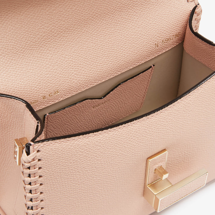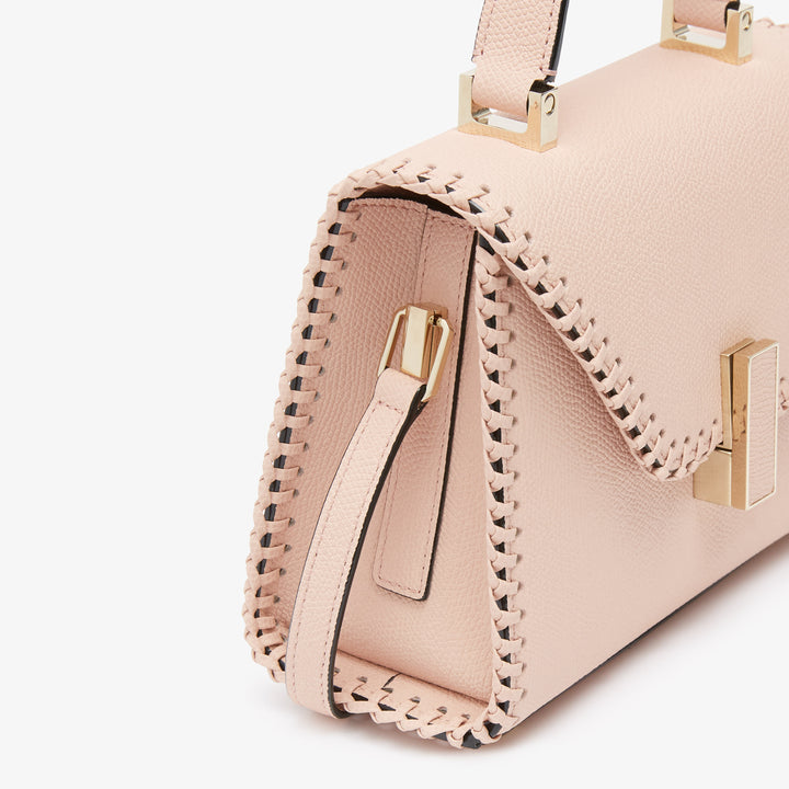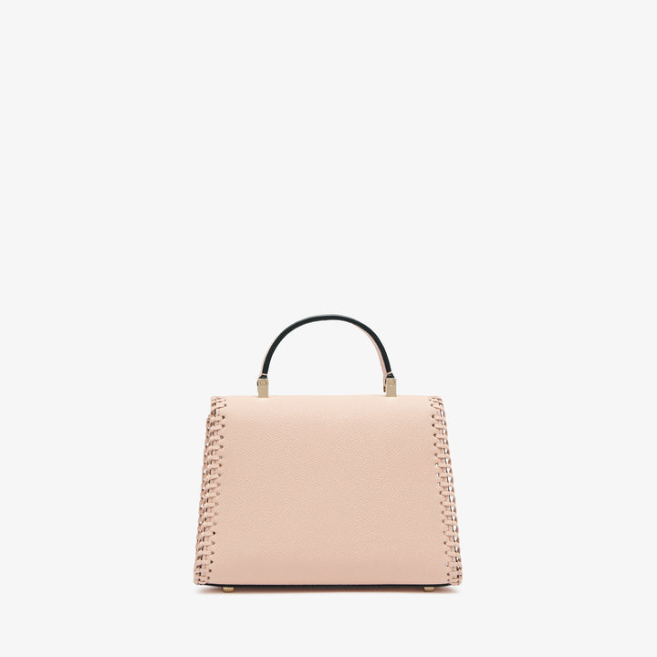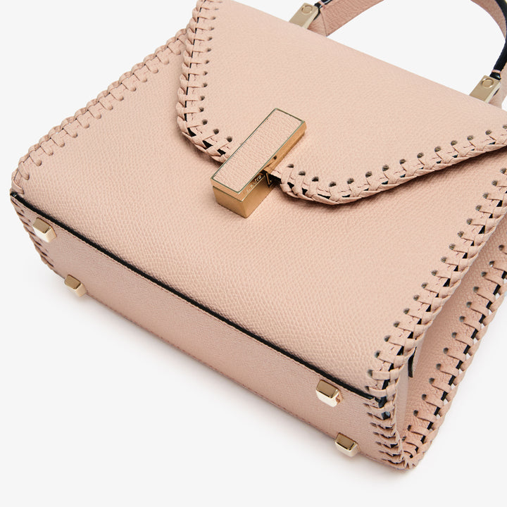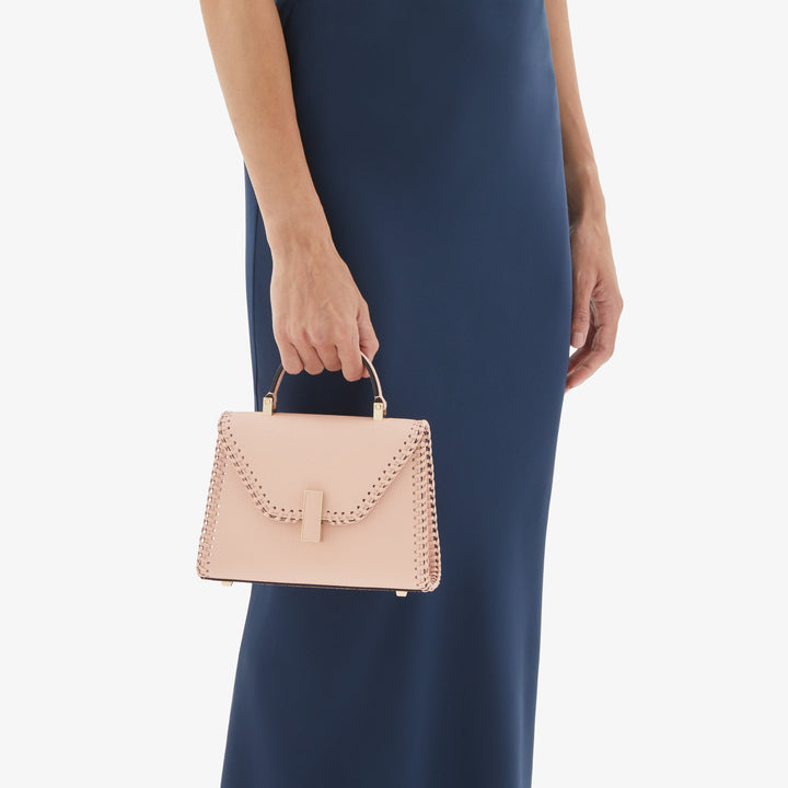 バッグの輪郭に沿って職人の手仕事によるブランケットステッチを施したマイクロ・イジィデは、都会的なエレガンスとクラフツマンシップが融合したアイテムです。メインのコンパートメントは日常生活の必需品を収納できるキャパシティを持ち、ワンハンドルバッグとしてはもちろん、付属のショルダーストラップを使えばクロスキャリーとしても使えます。