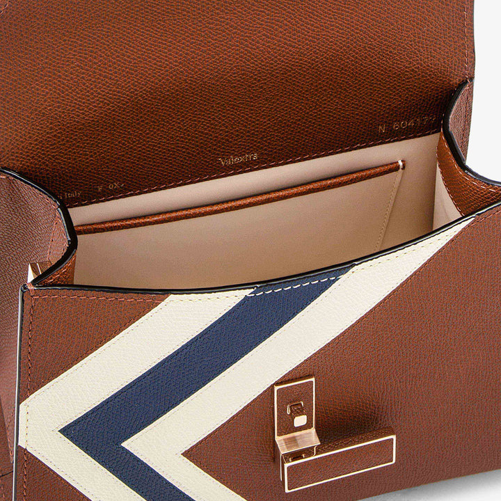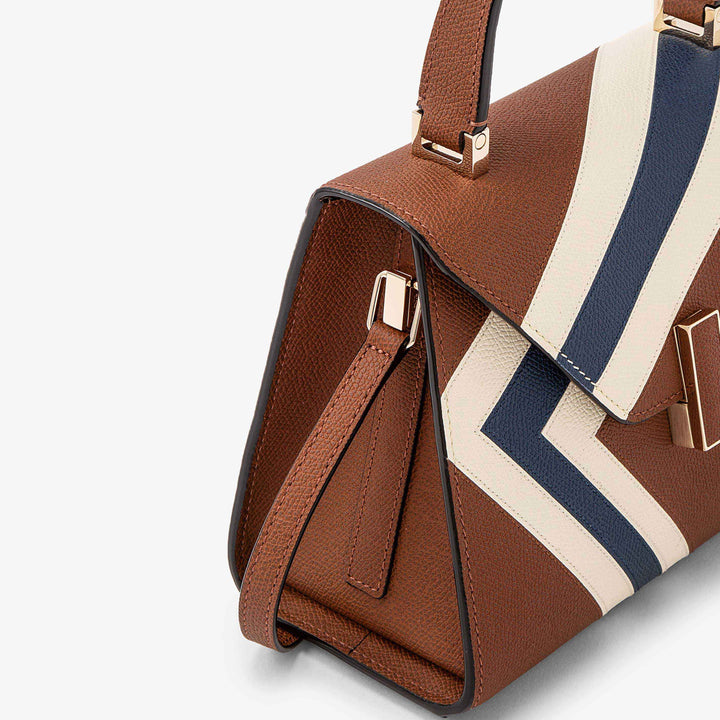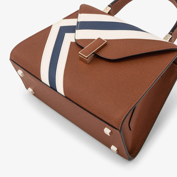 • ミニ イジィデ インターシャ ストライプ バッグ | チョコレート/ホワイト/サファイアブルー
