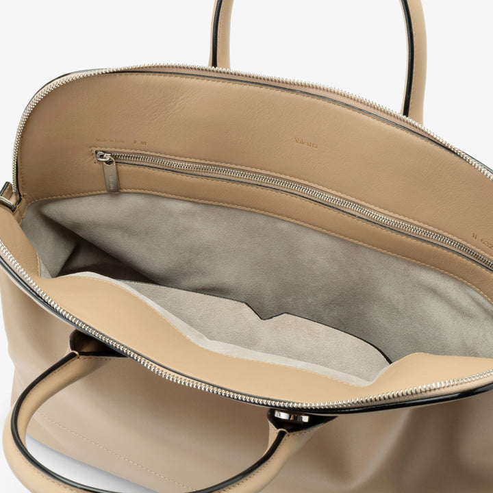 二本のトップハンドルは快適な持ち心地を叶え、グレーのスエードライニングとシグネチャーである漆黒のコスタエッジが、その気品をさらに際立たせます。時代を超えて愛されるタイムレスさと、現代的な感性を併せ持つこのバッグは、永く寄り添うラグジュアリーレザーのアイコンです。