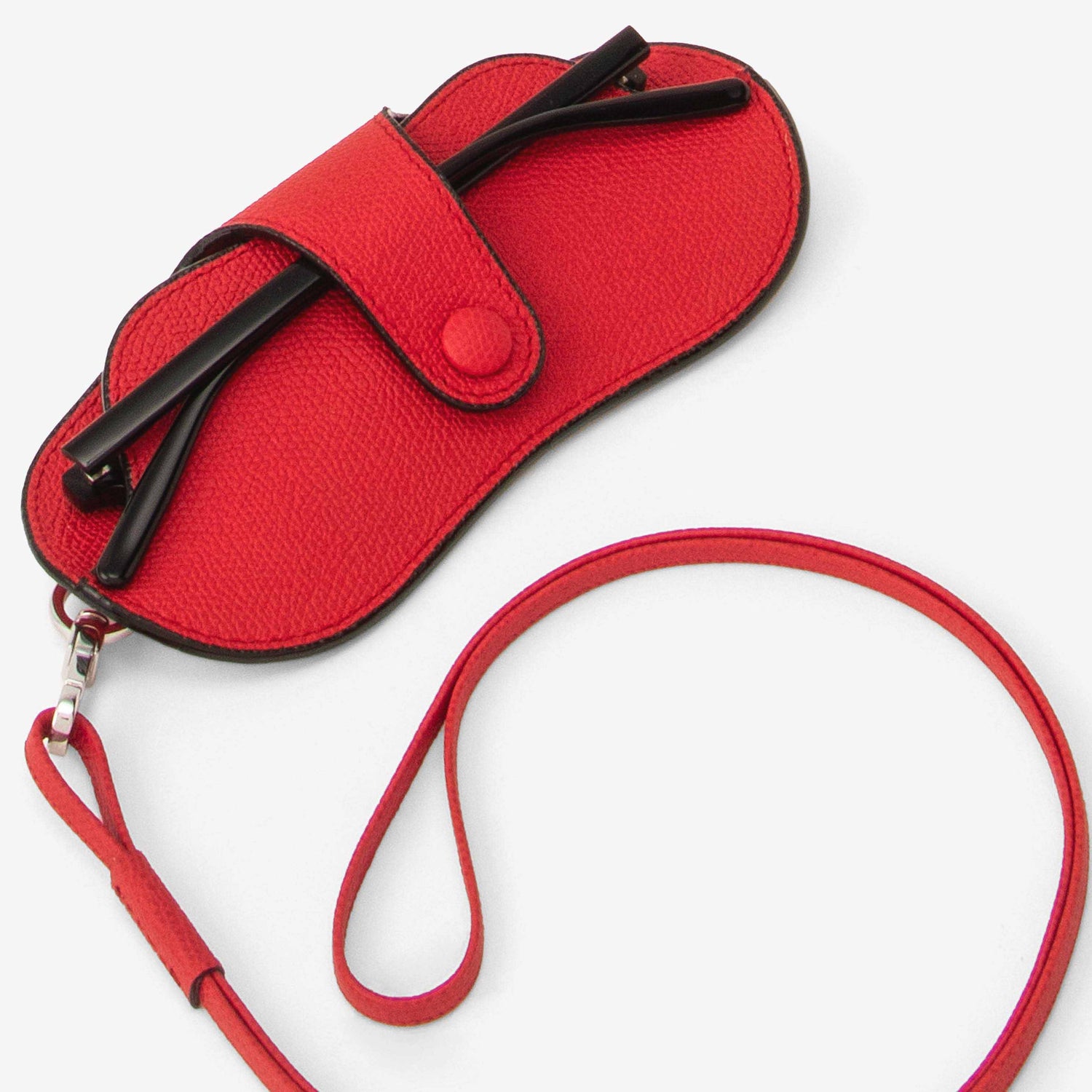 シンプルなデザインの眼鏡ケース。デザイン性のある大き目の眼鏡/サングラスも収納することができ、取り外し可能なネックストラップを付けてアクセサリー感覚で着用することもできます。