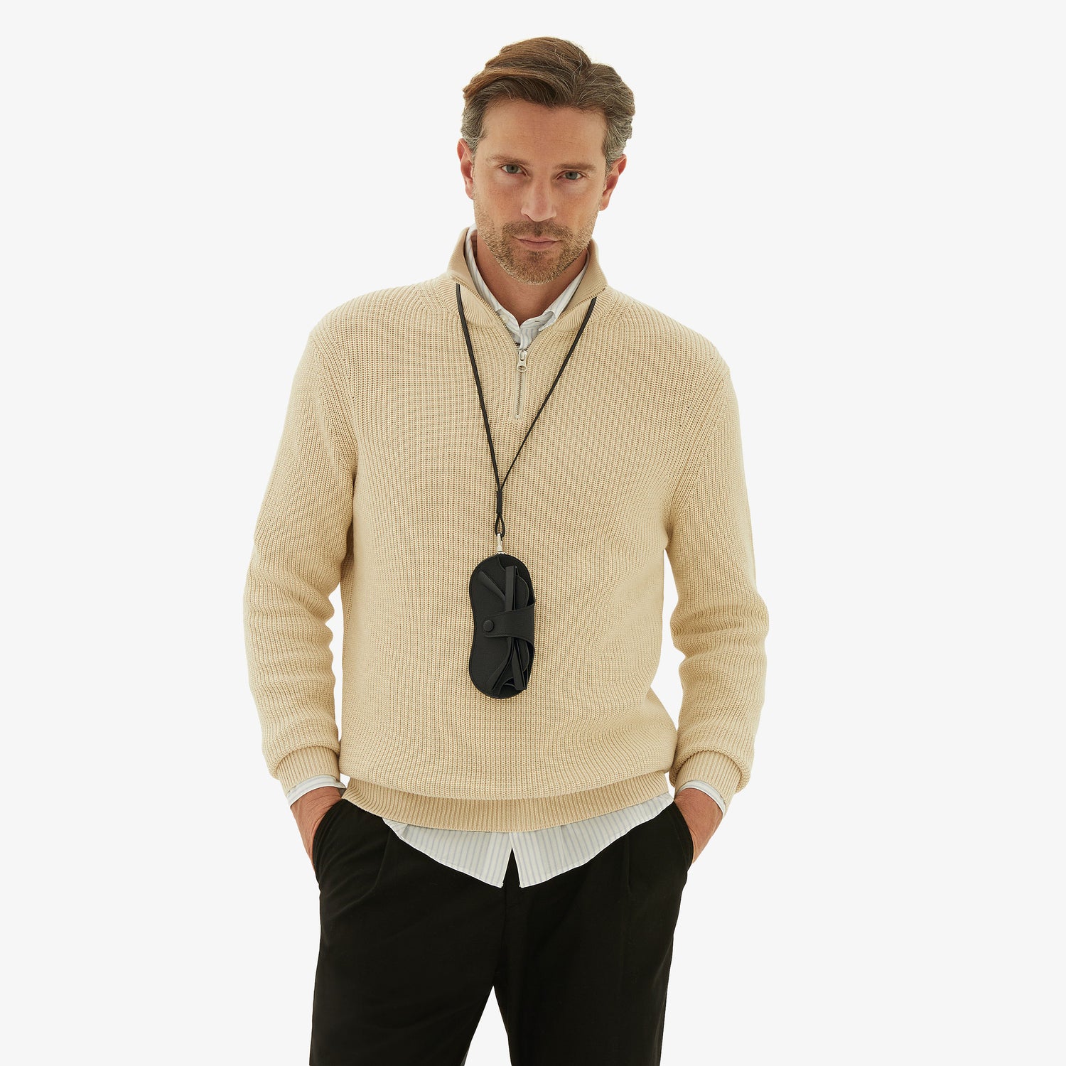 シンプルなデザインの眼鏡ケース。デザイン性のある大き目の眼鏡/サングラスも収納することができ、取り外し可能なネックストラップを付けてアクセサリー感覚で着用することもできます。